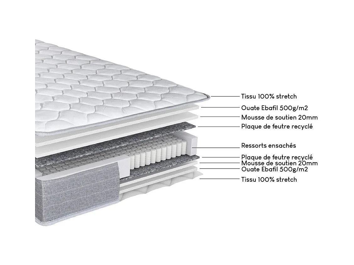 Matelas ressort + Sommier SR9 Deco 90x190 Record - H. 20 cm - Soutien ferme