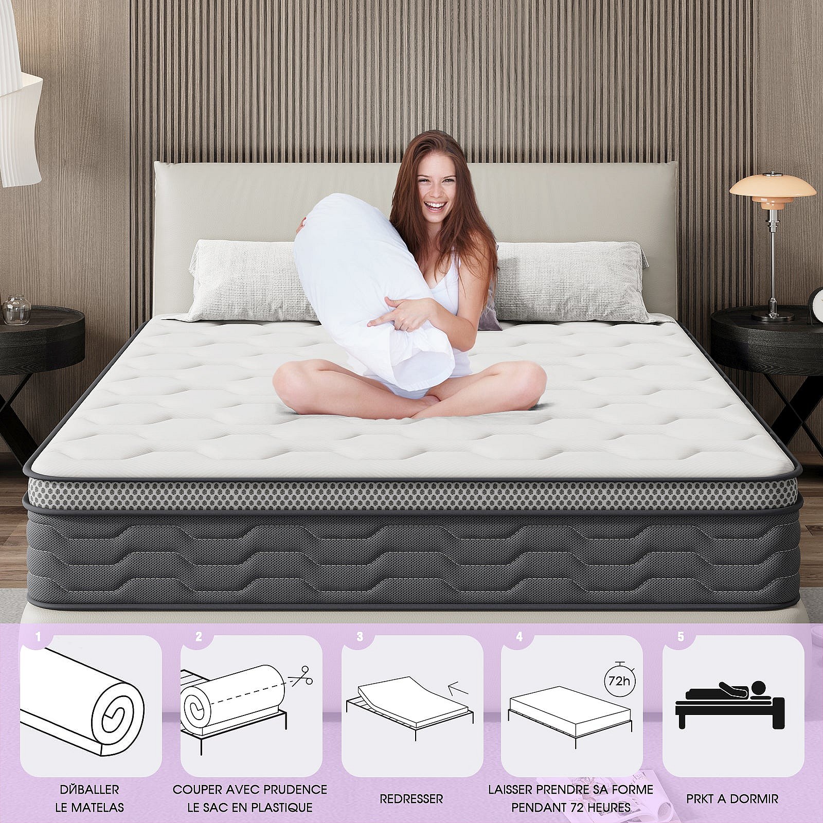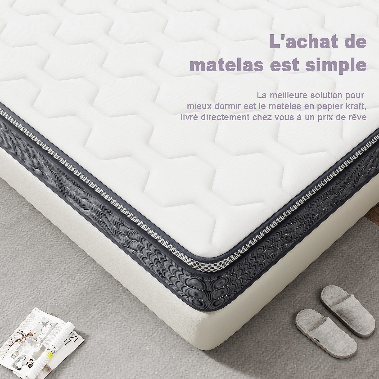 Matelas Ressorts 90x190 cm, Confort, 7 Zones Ergonomique,25 cm d'épaisseur