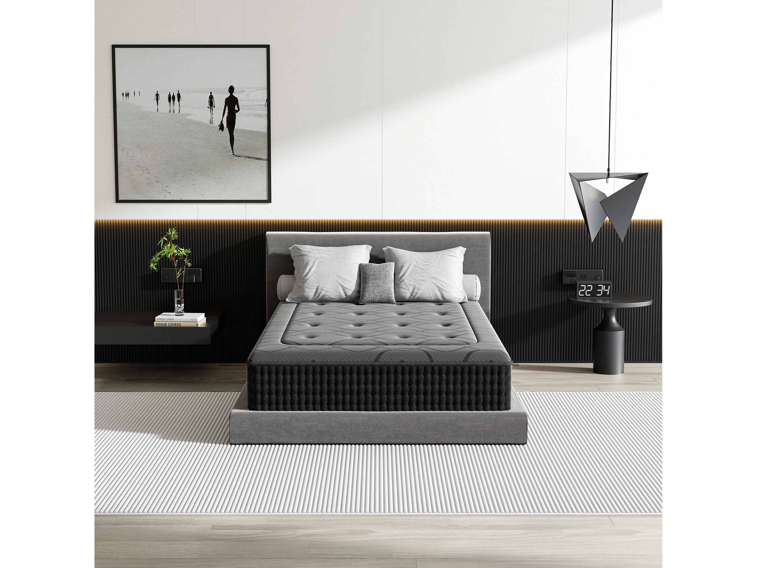 Vesgantti Matelas Gris 90x190cm, 25cm Épais, Hybrid Ressorts Ensachés & Mousse Mémoire, 7 Zones Confort, Multicouches, Certifié Oeko-Tex