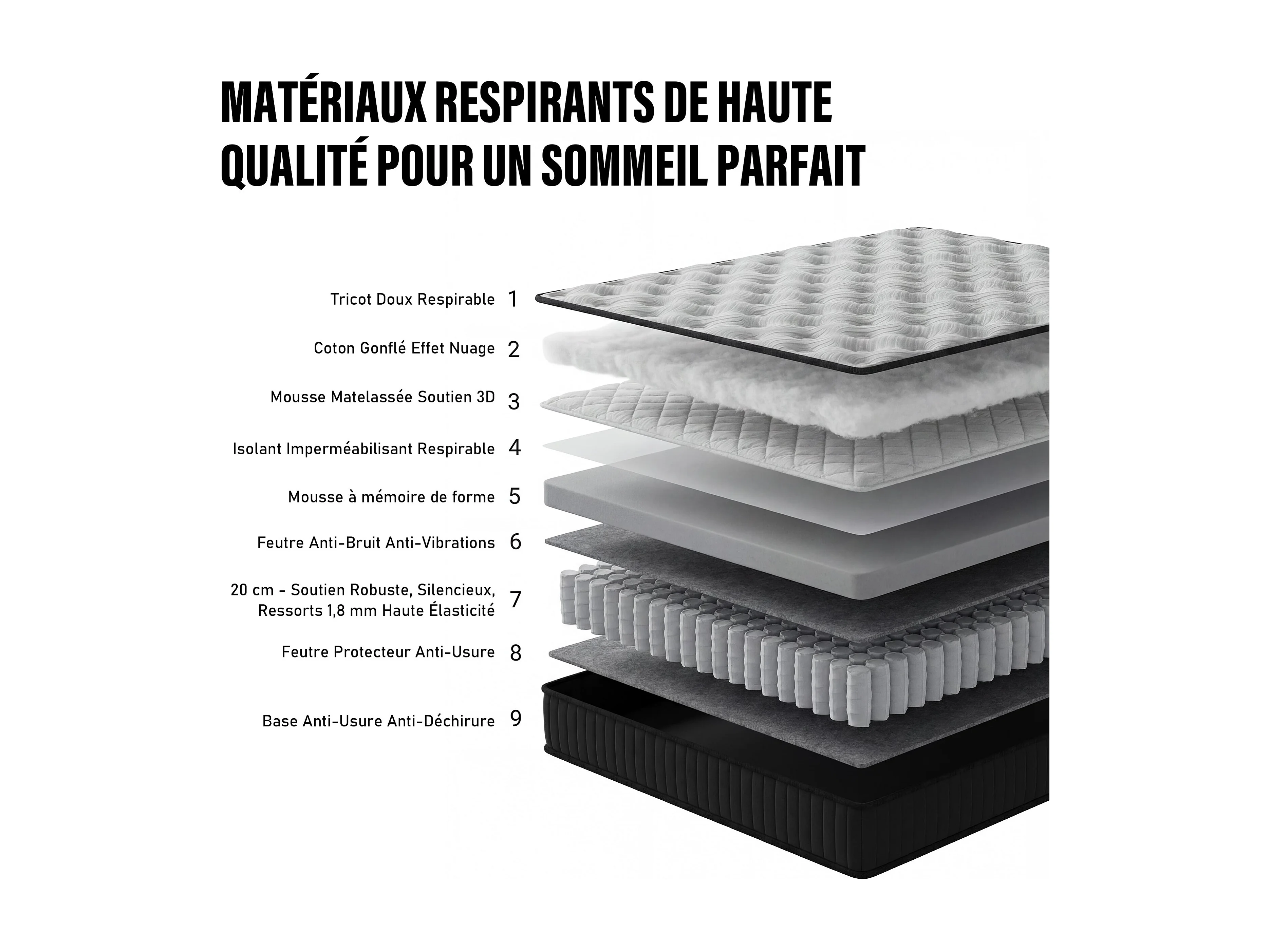 Matelas Ressorts Ensachés 160x200 cm avec mémoire de forme ép.25 cm