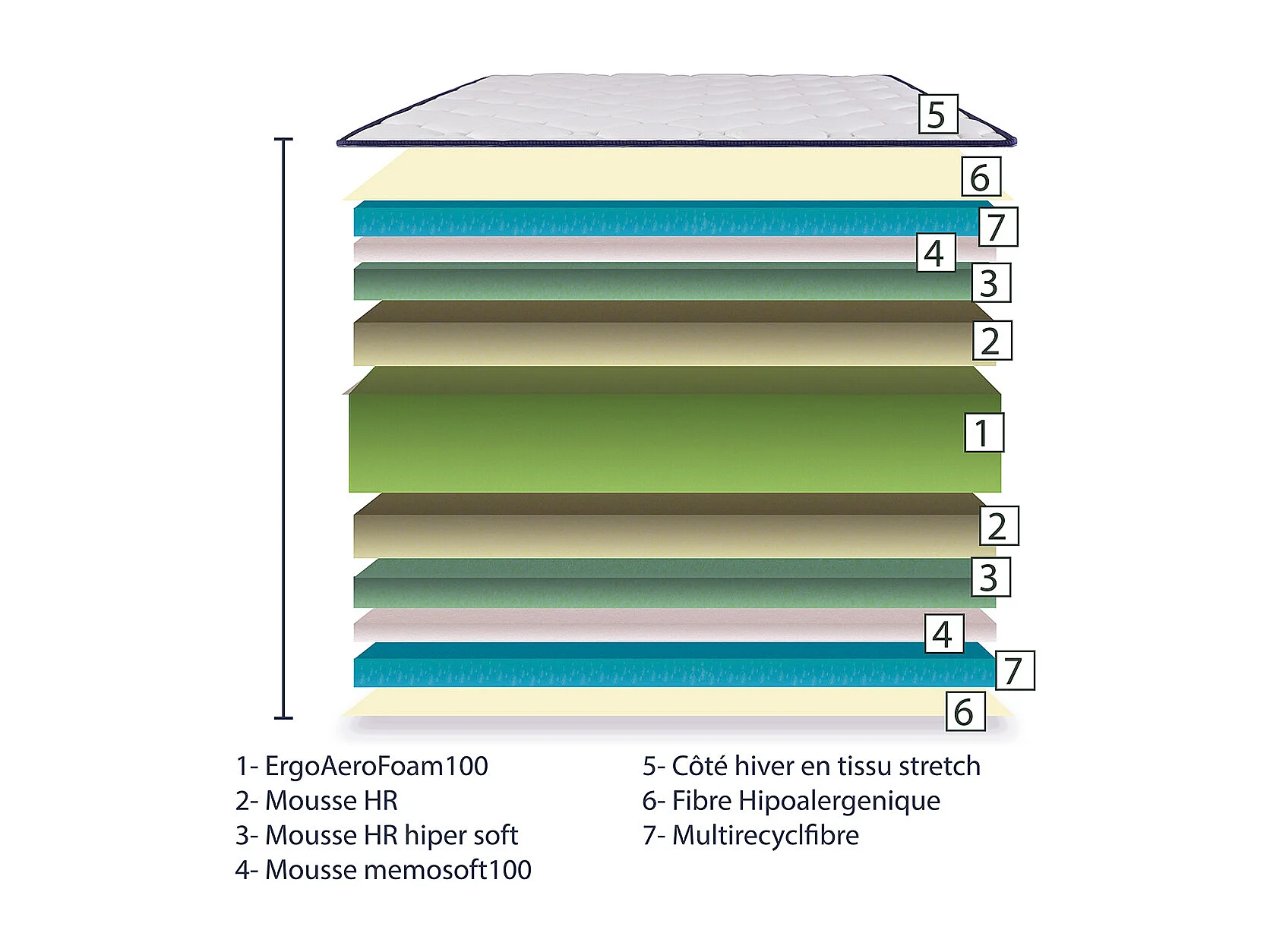 Matelas réversible CALI 160x200 cm, mousse haute densité, indépendance du couchage, face été/hiver, épaisseur 24 cm