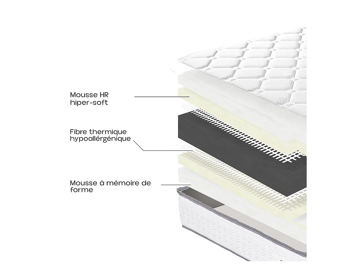 Matelas RONA King Size 180x200 cm, réversible en mousse Memosoft100 à mémoire de forme et indépendance du couchage, épaisseur 20cm