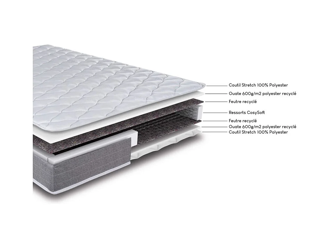 Matelas 140x190 Ryad - Ressorts - Hauteur 21 cm - Soutien très ferme