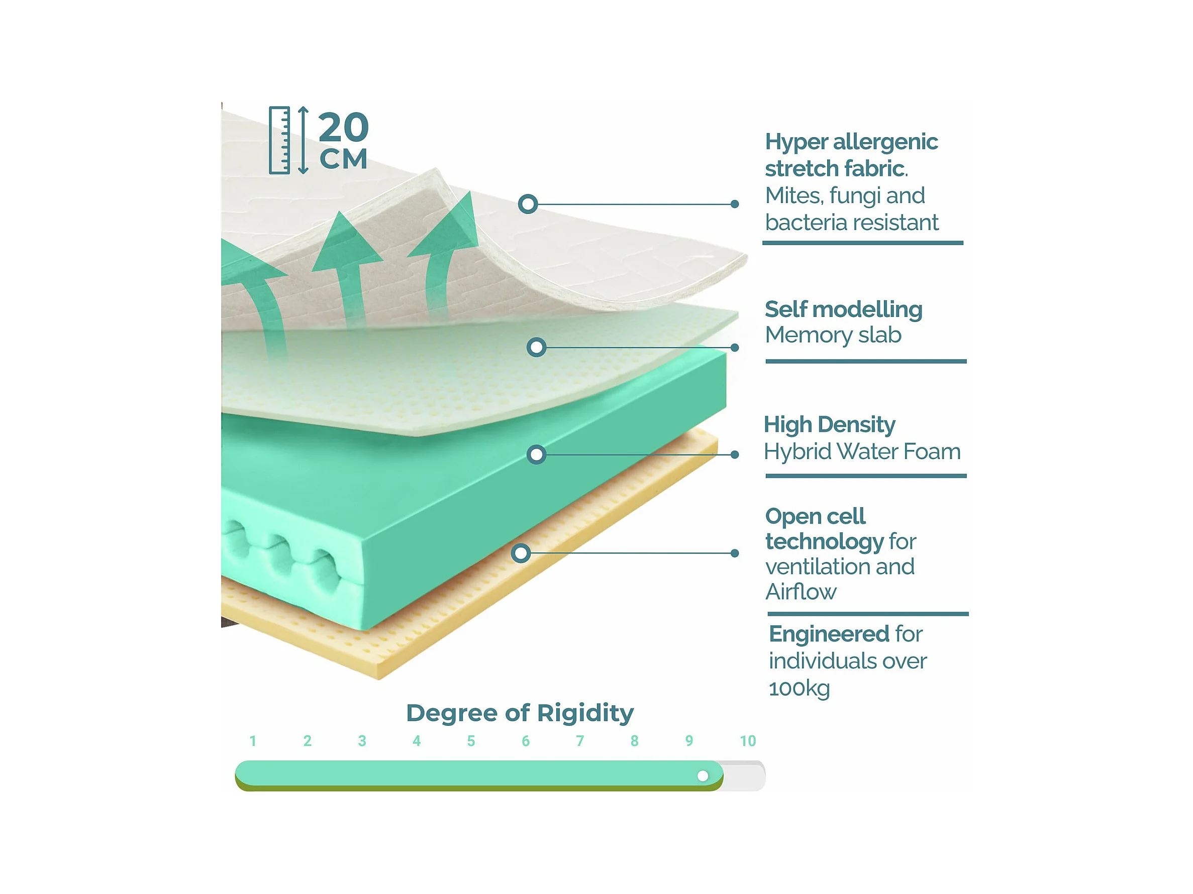 TANHK Matelas à mémoire haute densité 90x200, 20cm, Ferme, Hypoallergénique, Housse amovible, Fabriquée en Italie