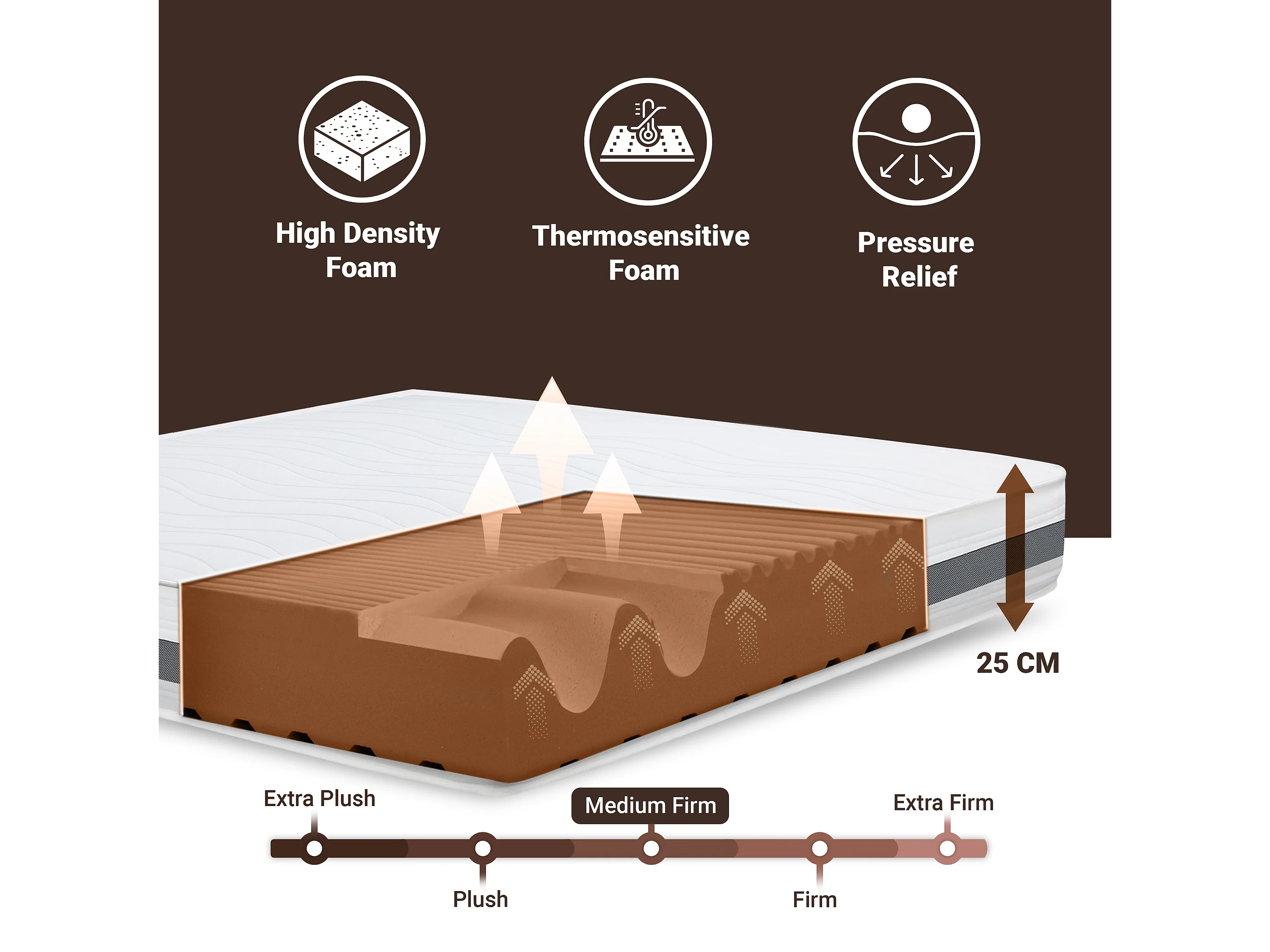 Matelas Simple XL 115x190 à mémoire orthopédique | Hauteur 25 cm | Made in Italy