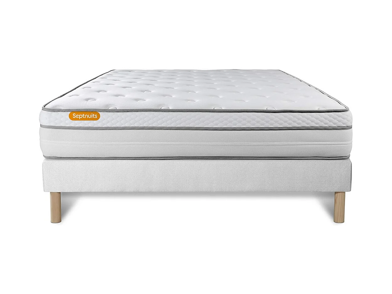 Matelas + sommier 140x190 Memo Luxe Ressorts ensachés + mémoire de forme 5 zones de confort MAXI épaisseur