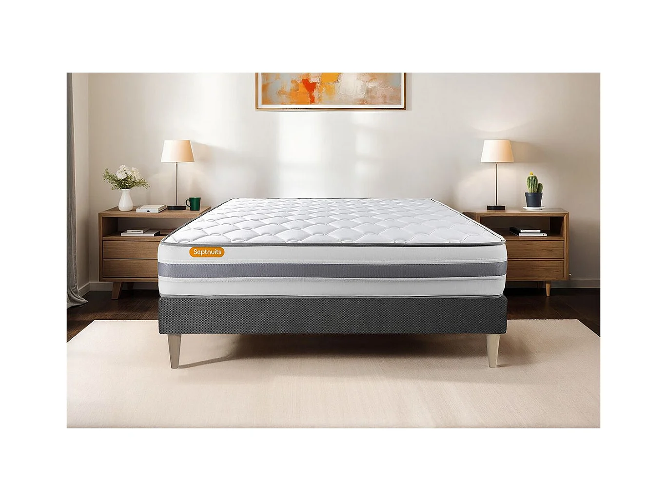 Matelas + sommier gris 140x190 Memo Spring Ressorts ensachés 3 zones de confort MAXI épaisseur