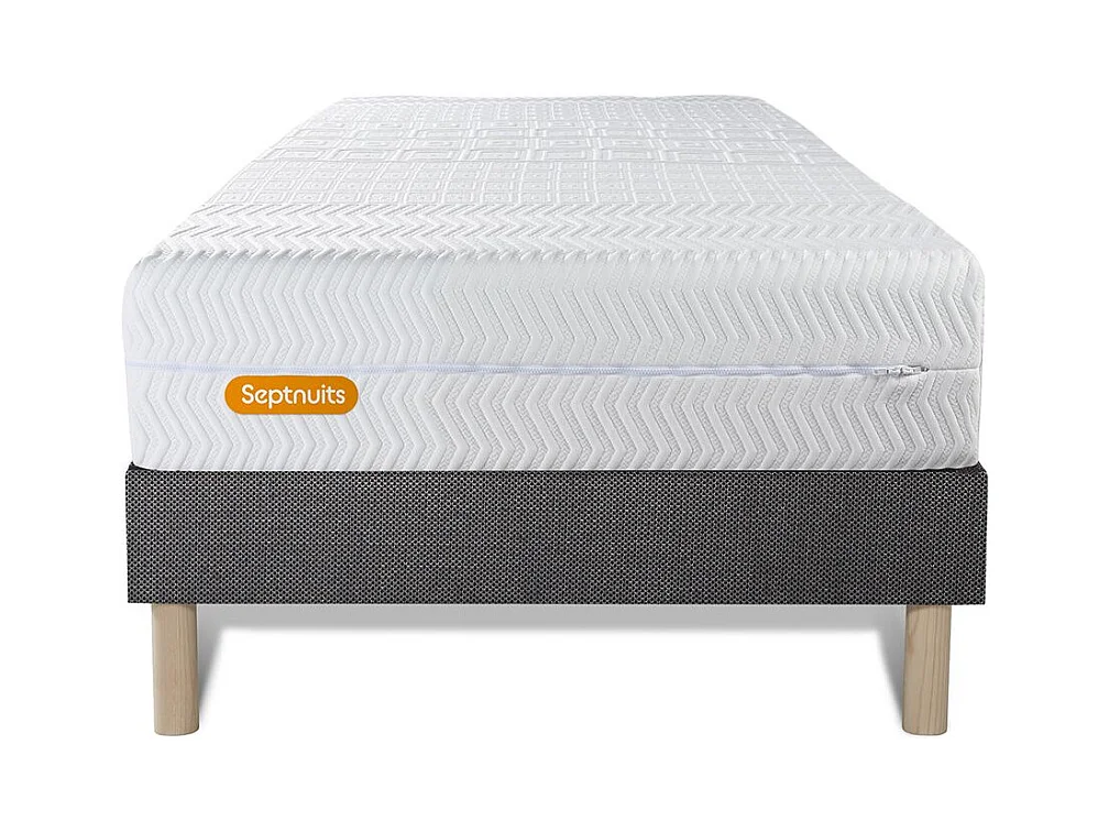 Matelas + sommier gris 90x200 Memo Bio Mousse à mémoire de forme 5 zones de confort Maxi épaisseur Déhoussable