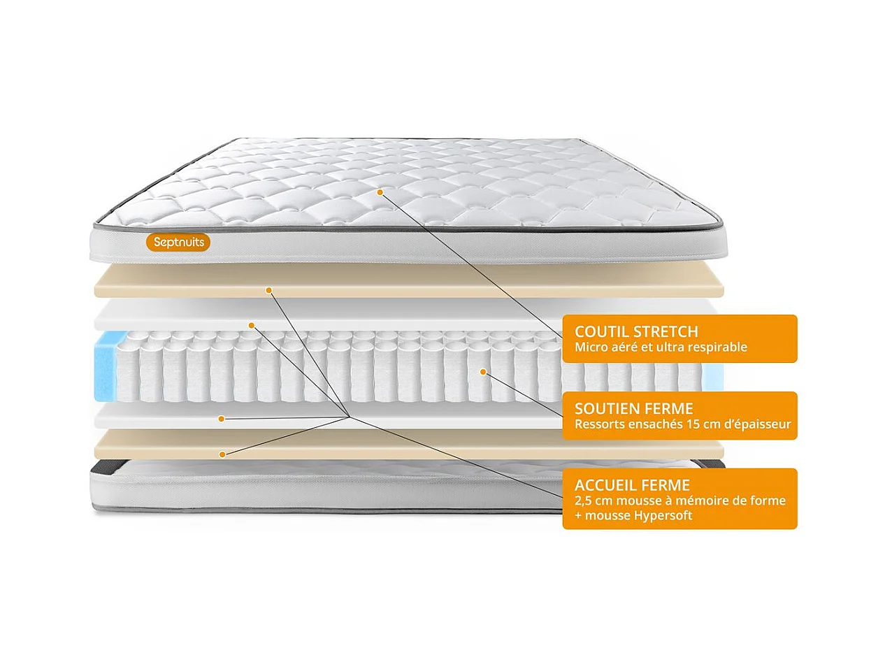 Matelas + sommier kit gris 140x190 Memo Spring Ressorts ensachés MAXI épaisseur