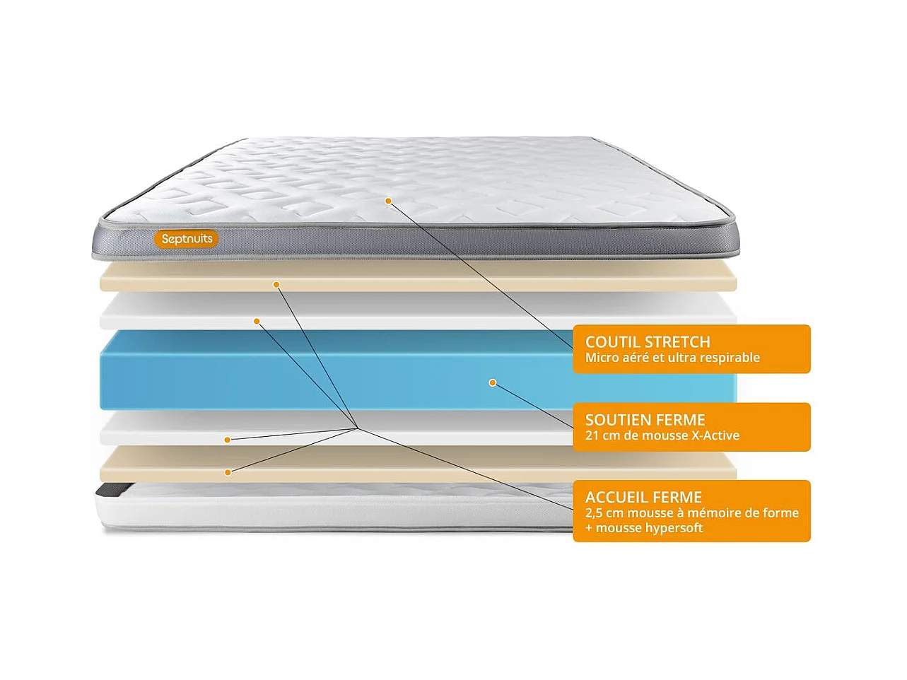 Matelas + sommier kit gris 140x200 Memo Zen Mousse à mémoire de forme MAXI épaisseur