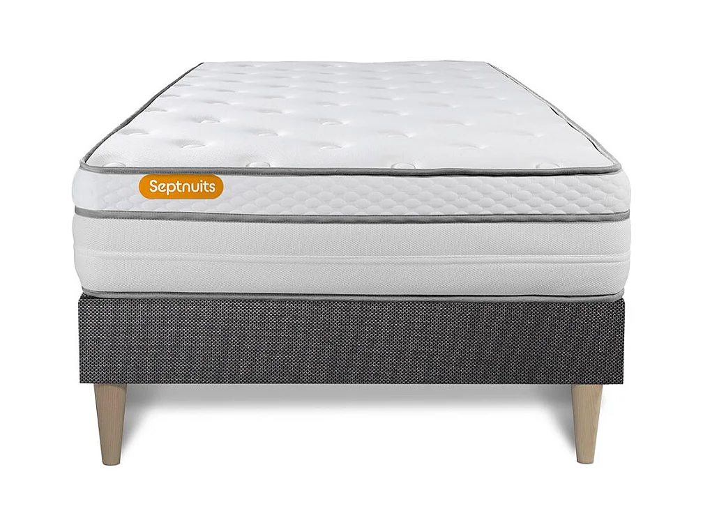 Matelas + sommier kit gris 90x200 Memo Luxe Ressorts ensachés + mémoire de forme MAXI épaisseur