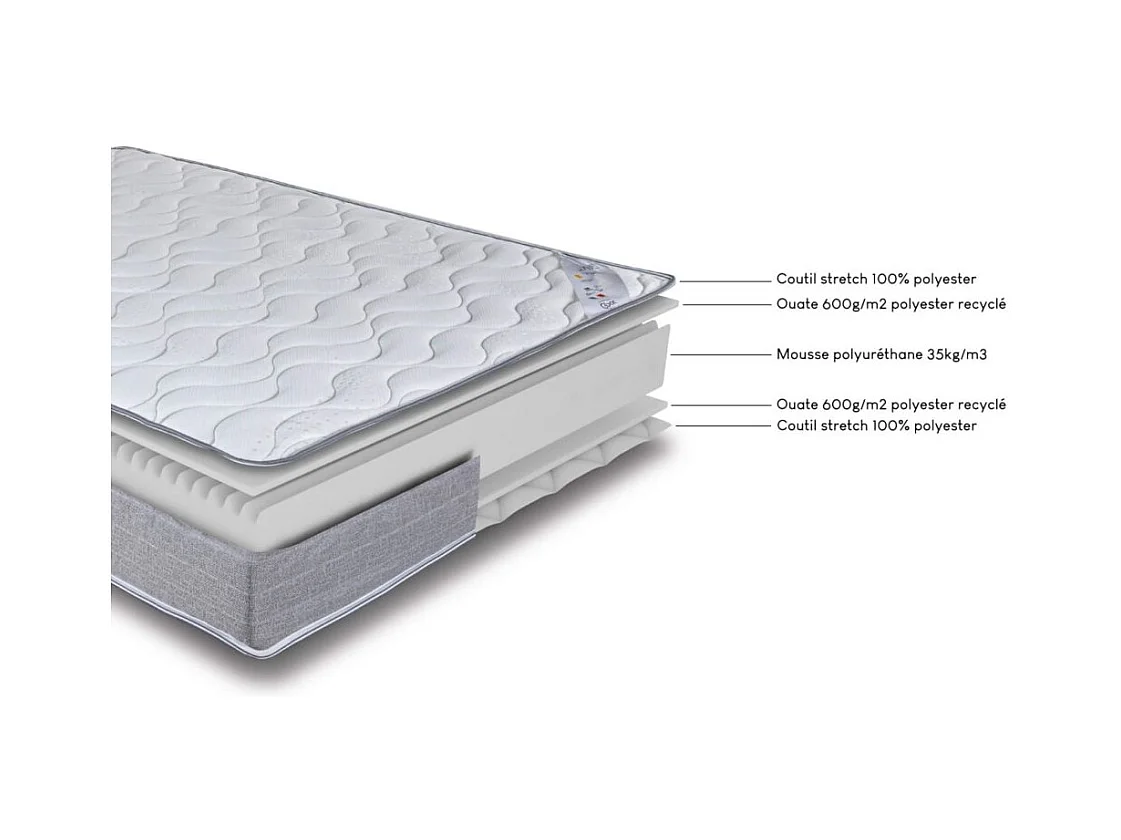 Matelas 90x190 Wave - Mousse - Hauteur 19 cm - 3 zones - Soutien ferme