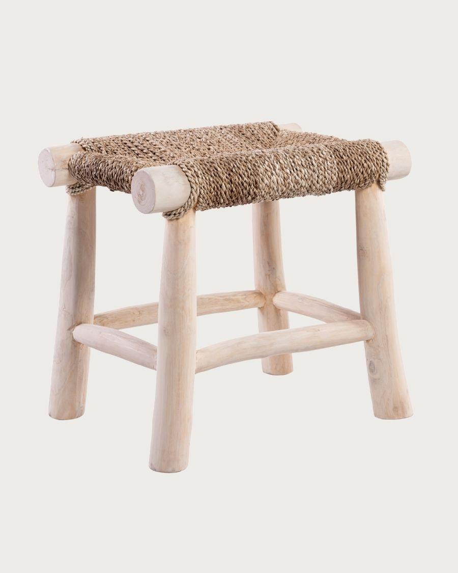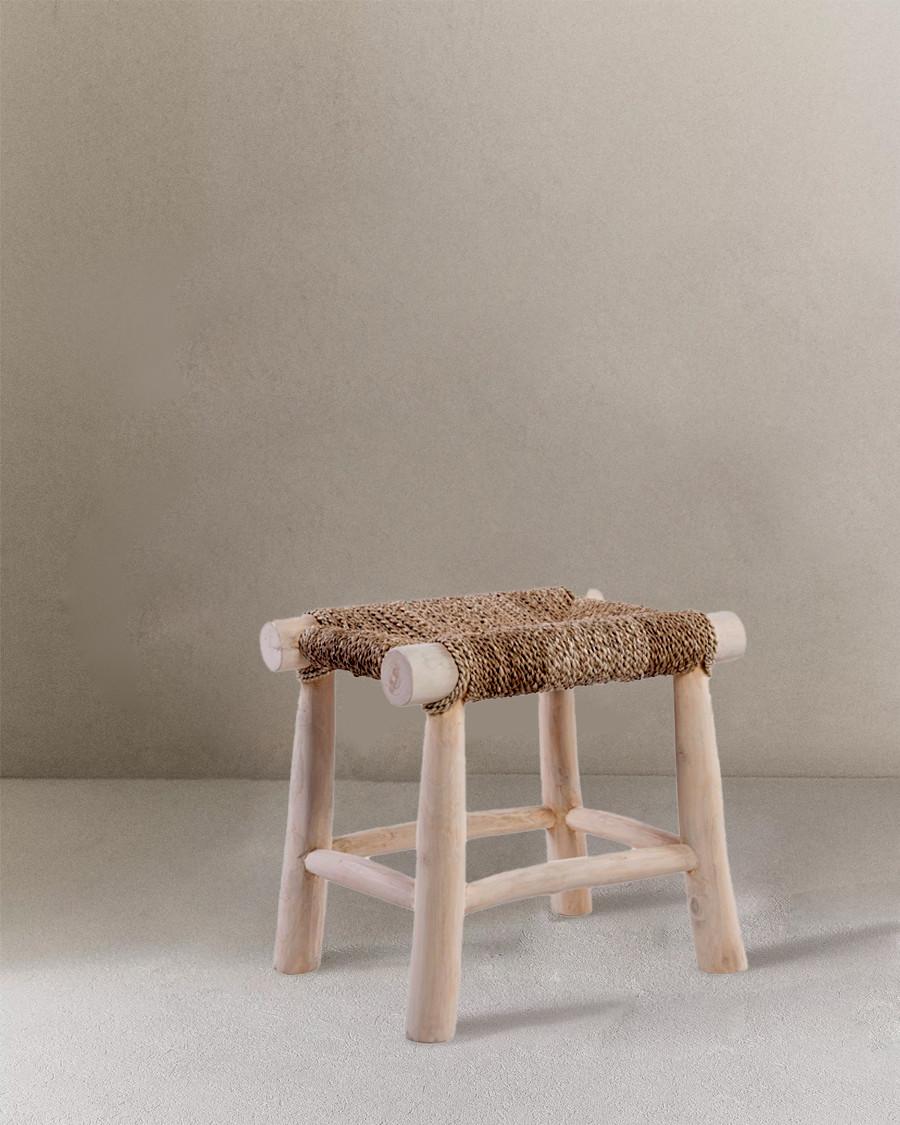 Matra - Tabouret en branche de teck et jacinthe d'eau