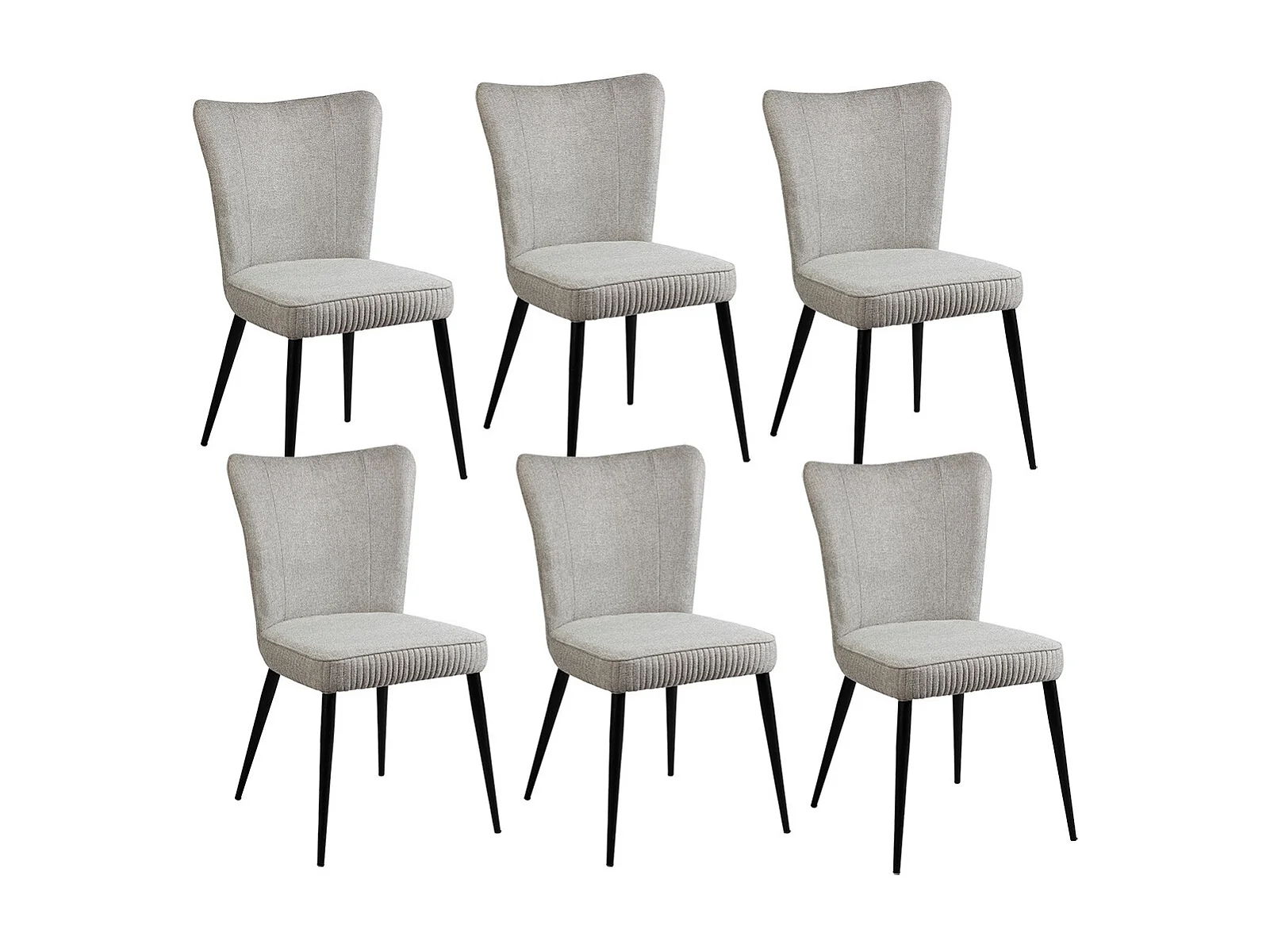 MAURINE - Lot de 6 Chaises Tissu Gris Clair Chiné Pieds Métal Noir Mat