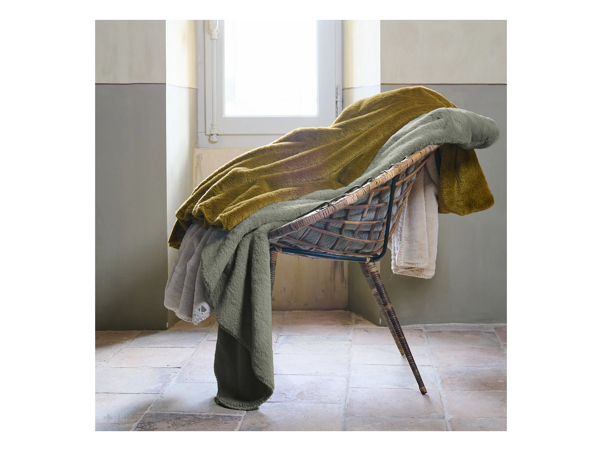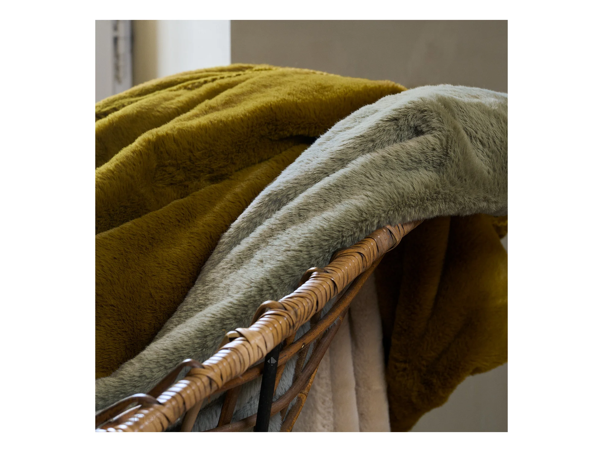 Maxi plaid en polyester 150x200 cm TANUKI fausse fourrure jaune foin