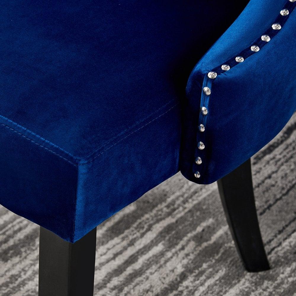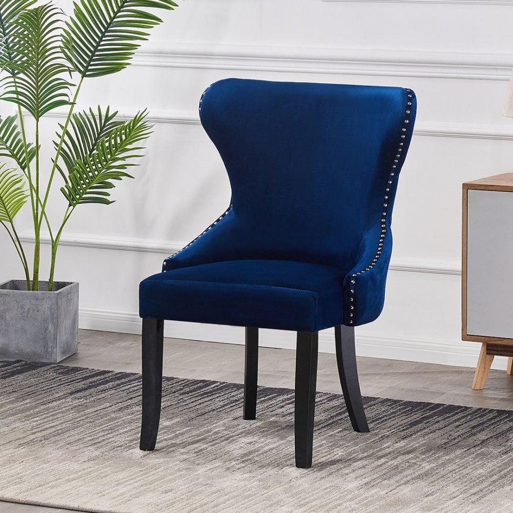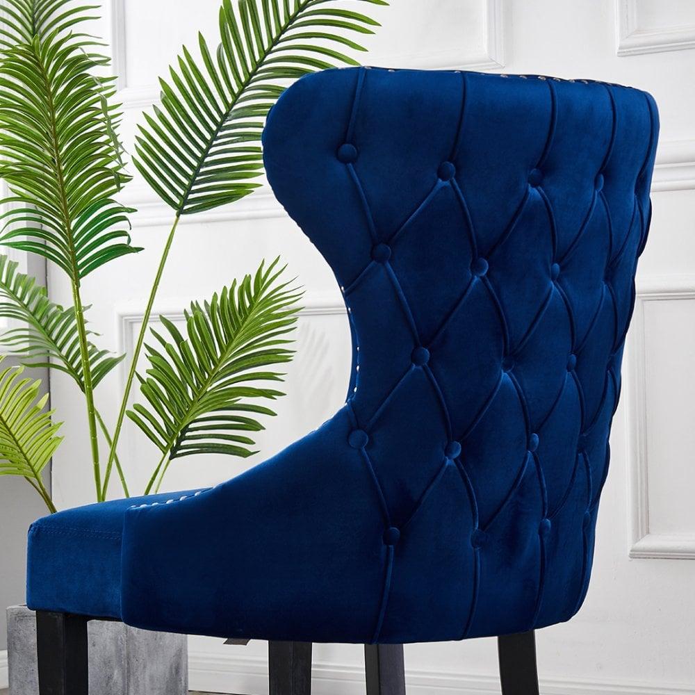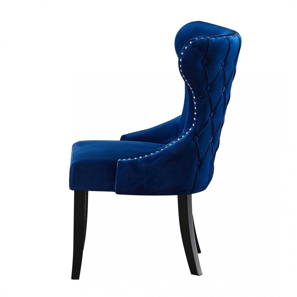 MAYFAIR - Chaise Capitonnée Velours - Style Contemporain - Pieds en Bois - Bleu