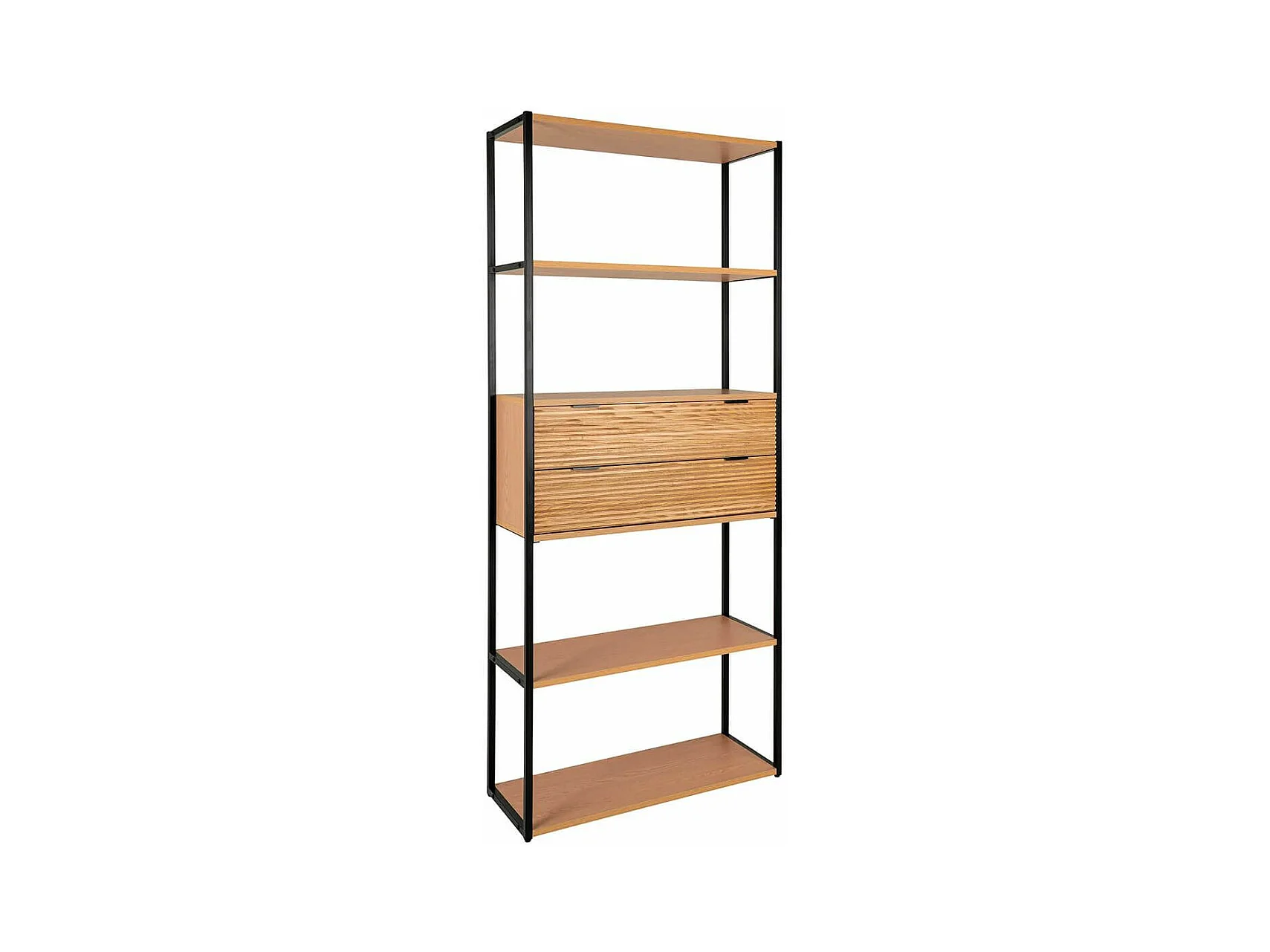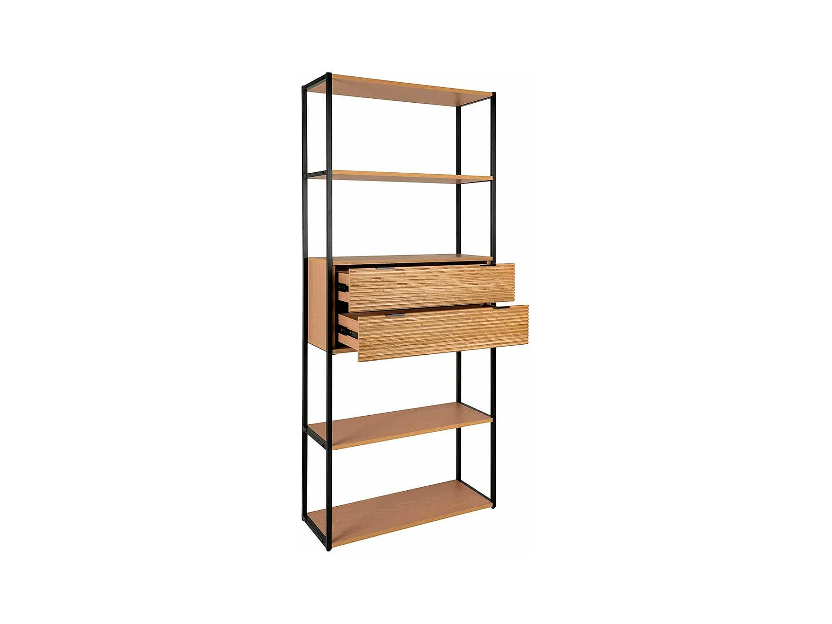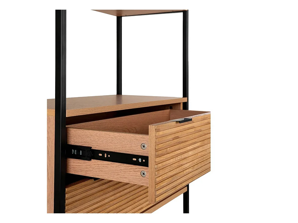 MAYLIS - Etagère avec 2 Tiroirs centraux Placage Frêne Structure Acier Noir
