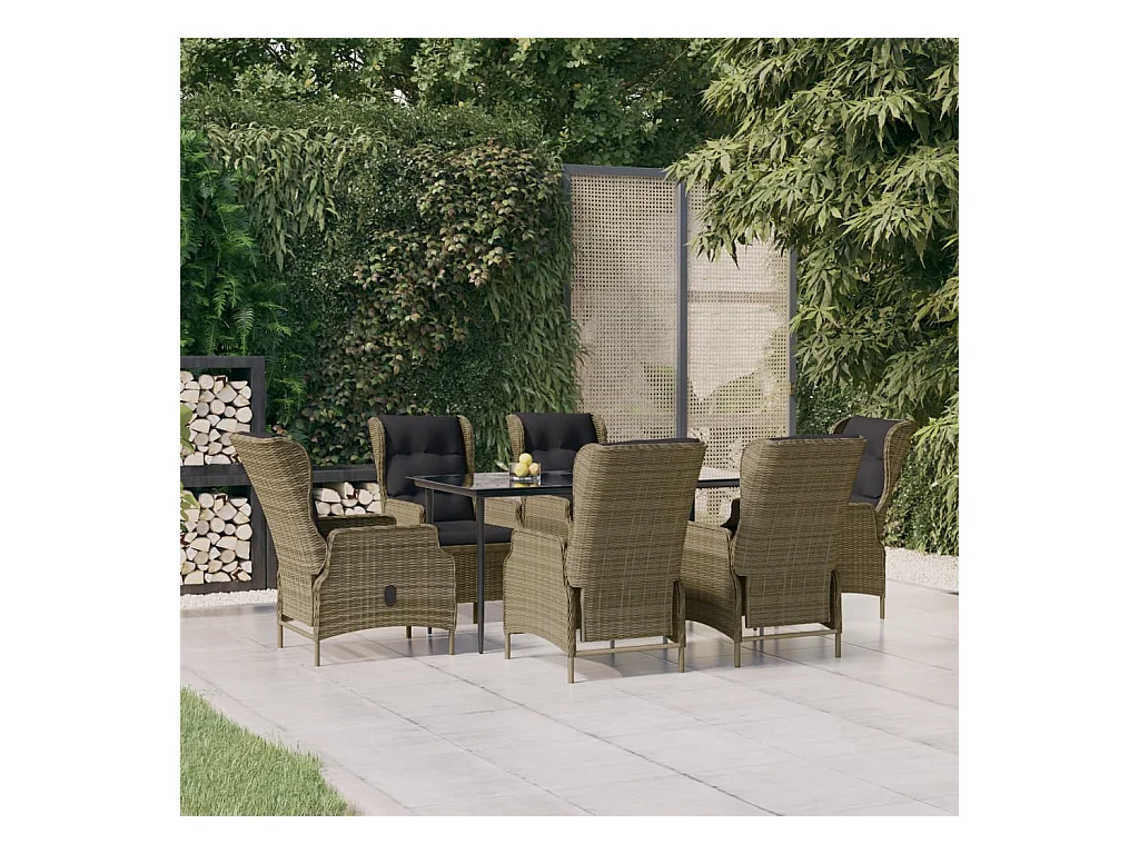 Mayra Ensemble à manger de jardin 7 pcs Marron Résine tressée