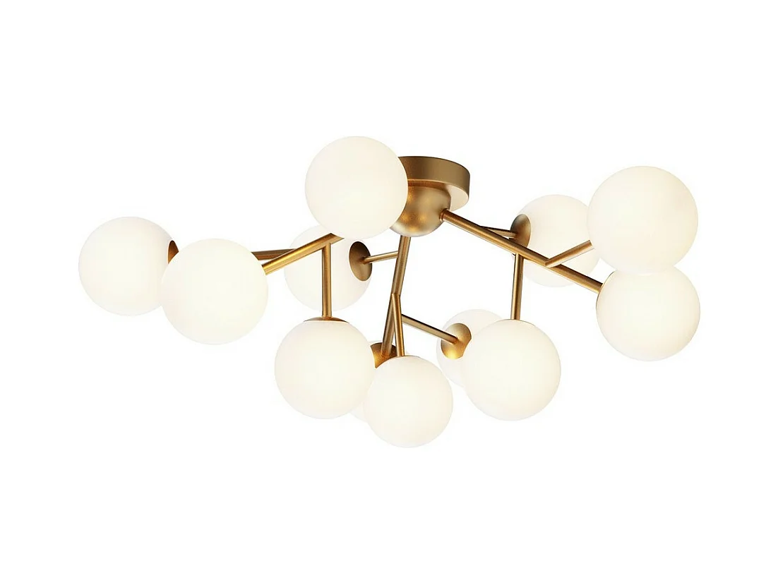 Maytoni Dallas Plafonnier globe moderne à 12 lumières doré, abat-jour cognac, G9