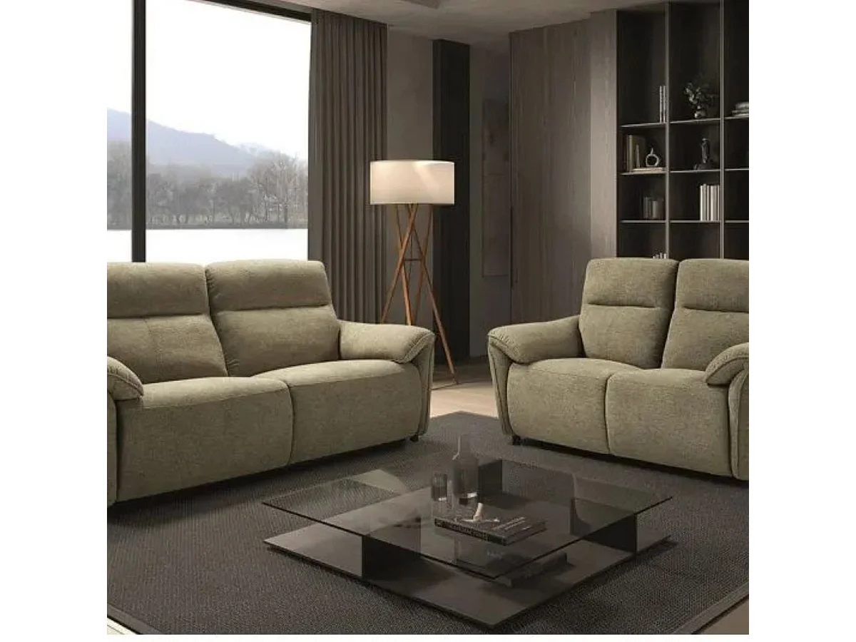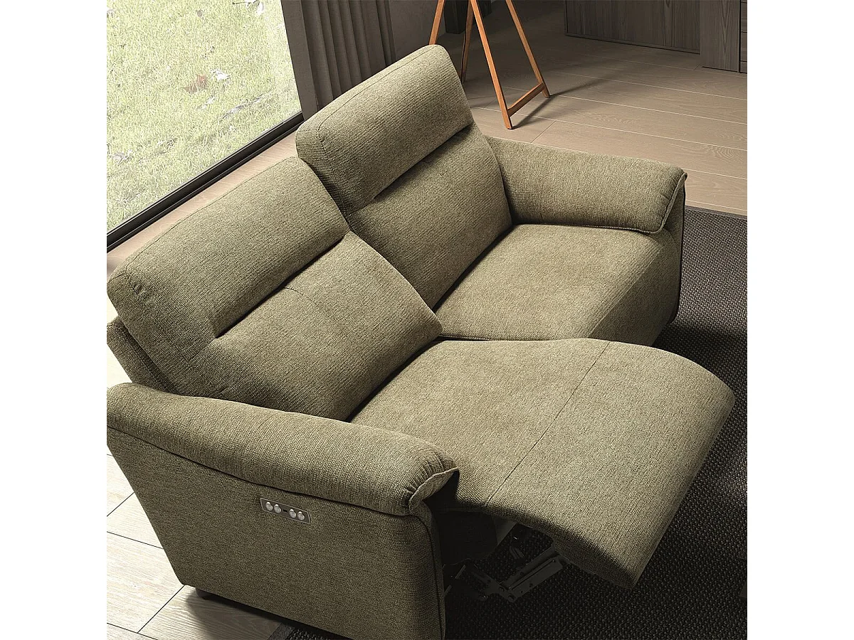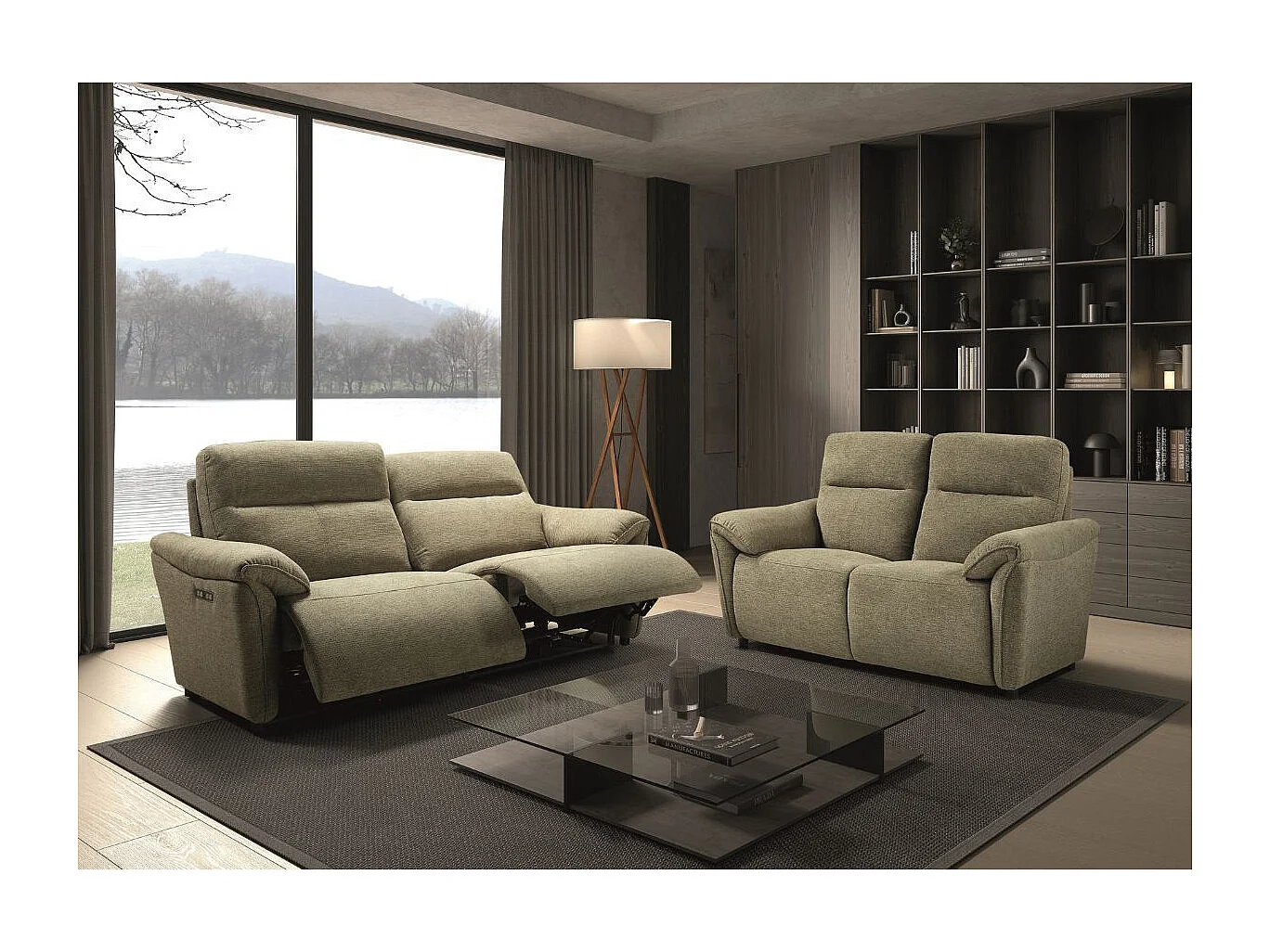 MAZARO - Canapés 3 Places Relax Electrique + 2 Places Fixe Tissu Vert Chiné