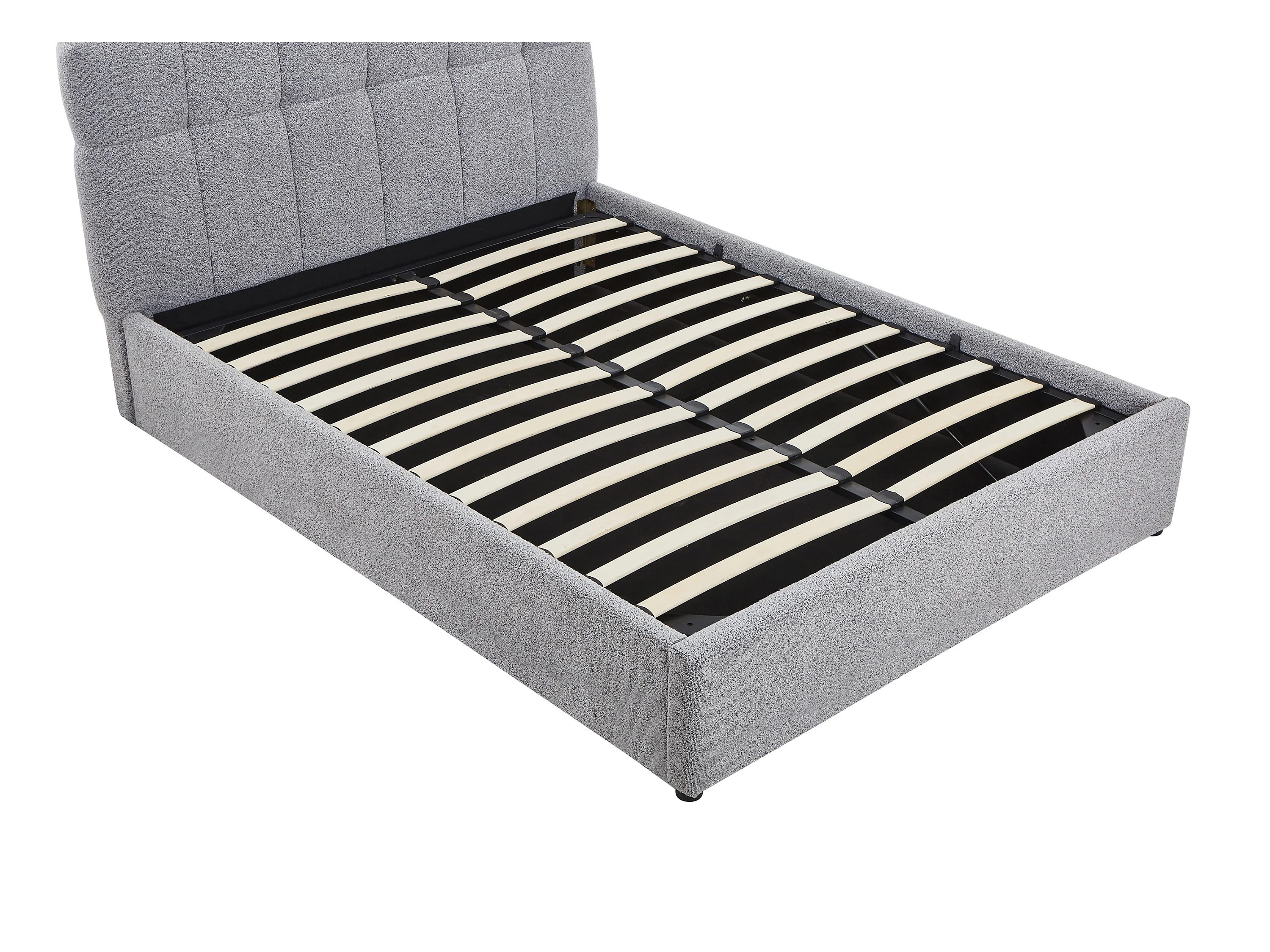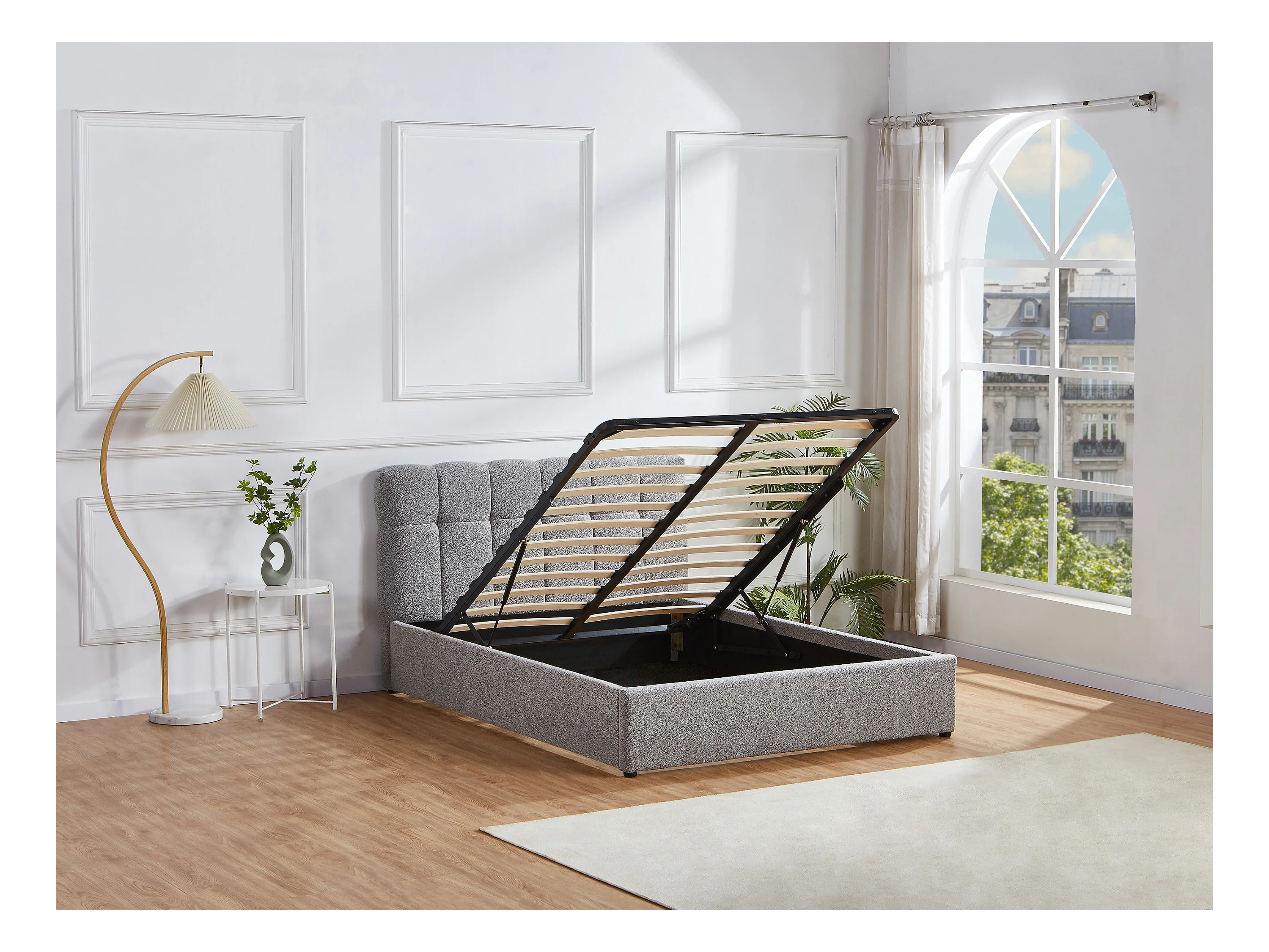 Lit coffre 140 x 190 cm - Tissu bouclette - Gris + Matelas - MAZIRI
