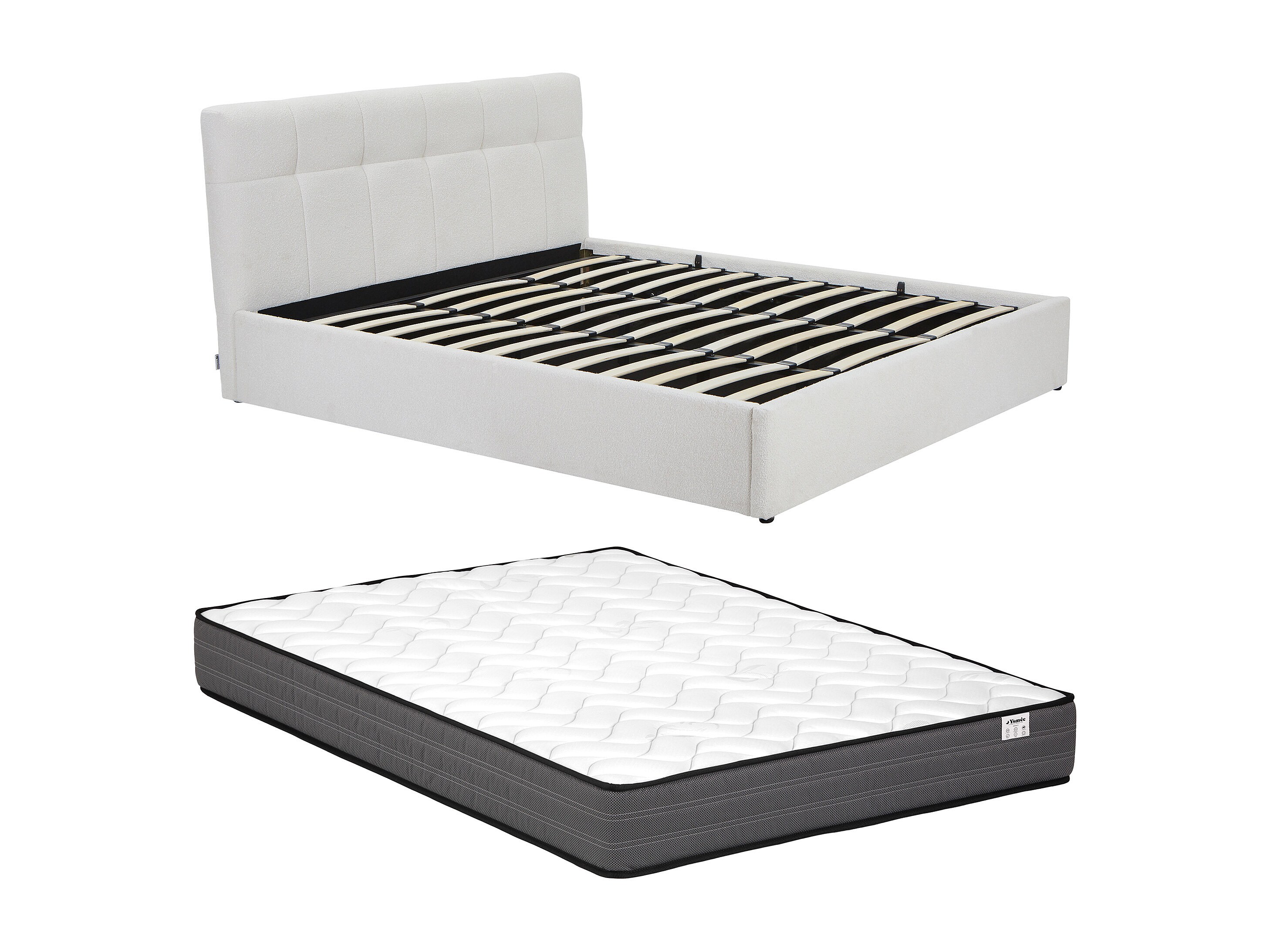 Lit coffre 180 x 200 cm - Tissu bouclette - Blanc + Matelas - MAZIRI