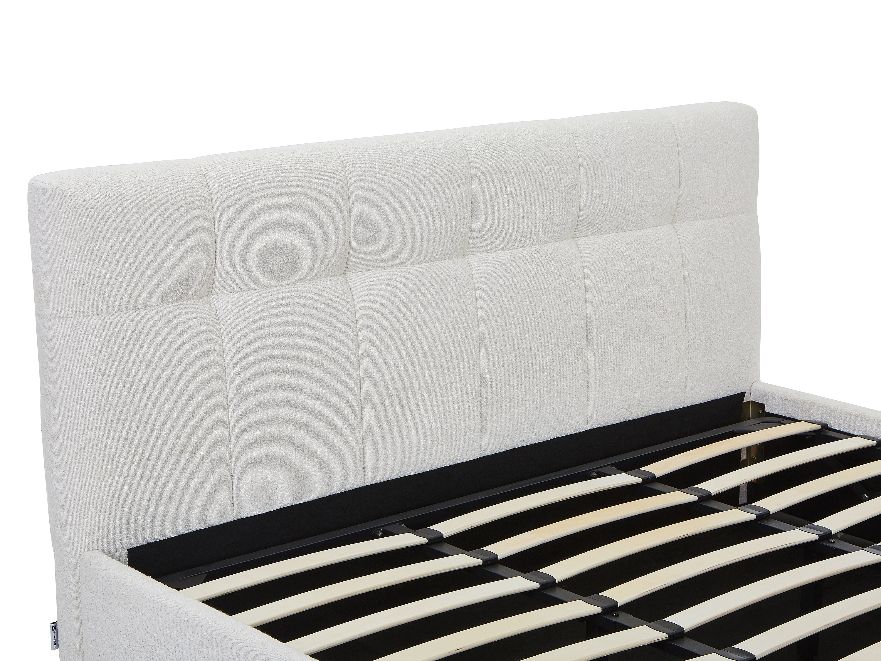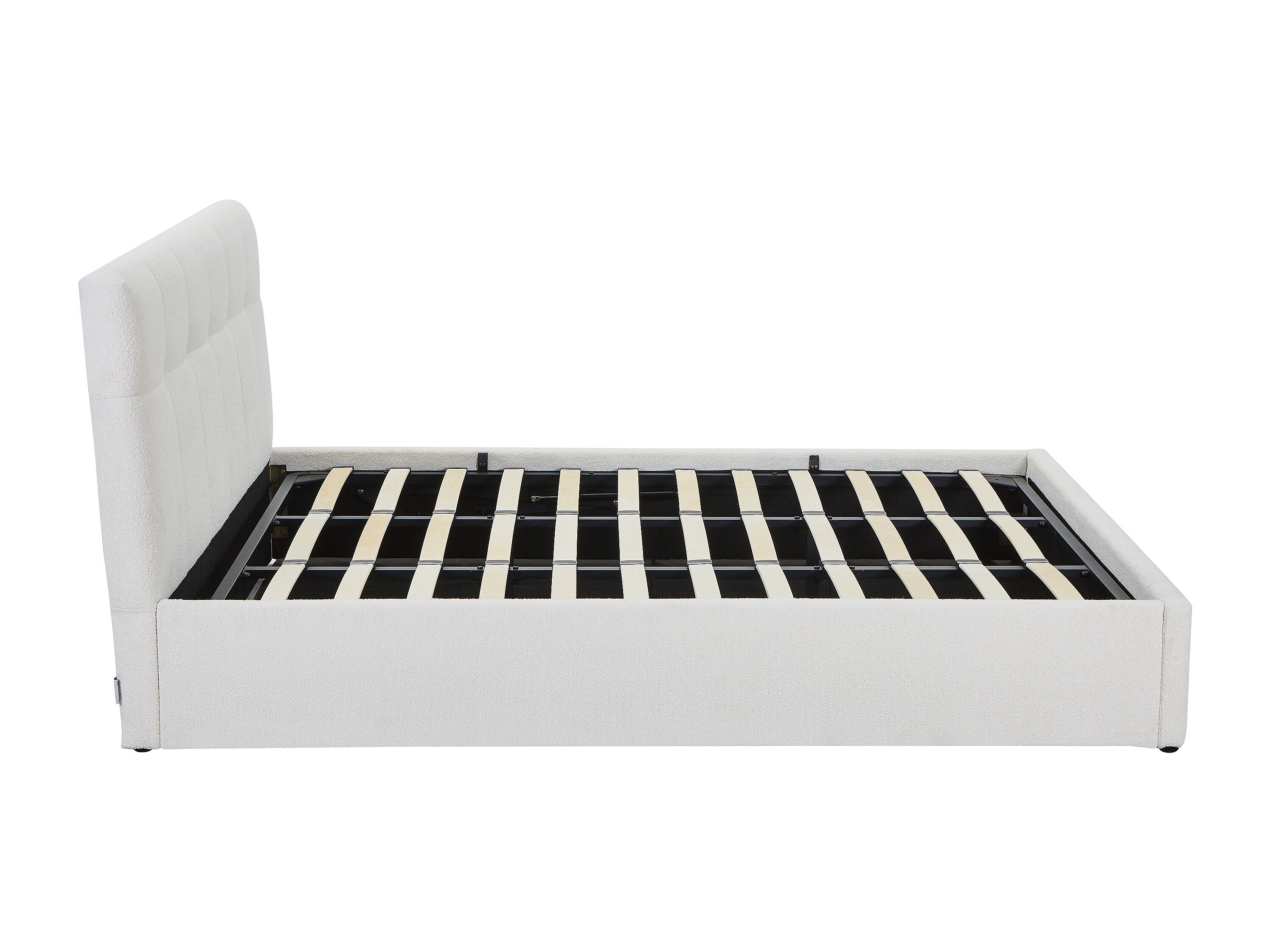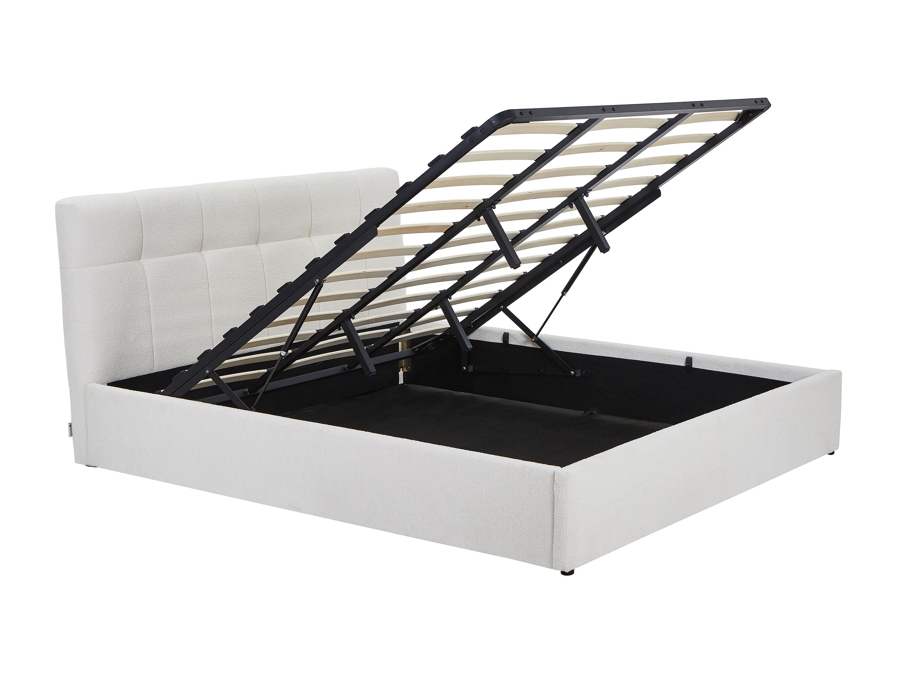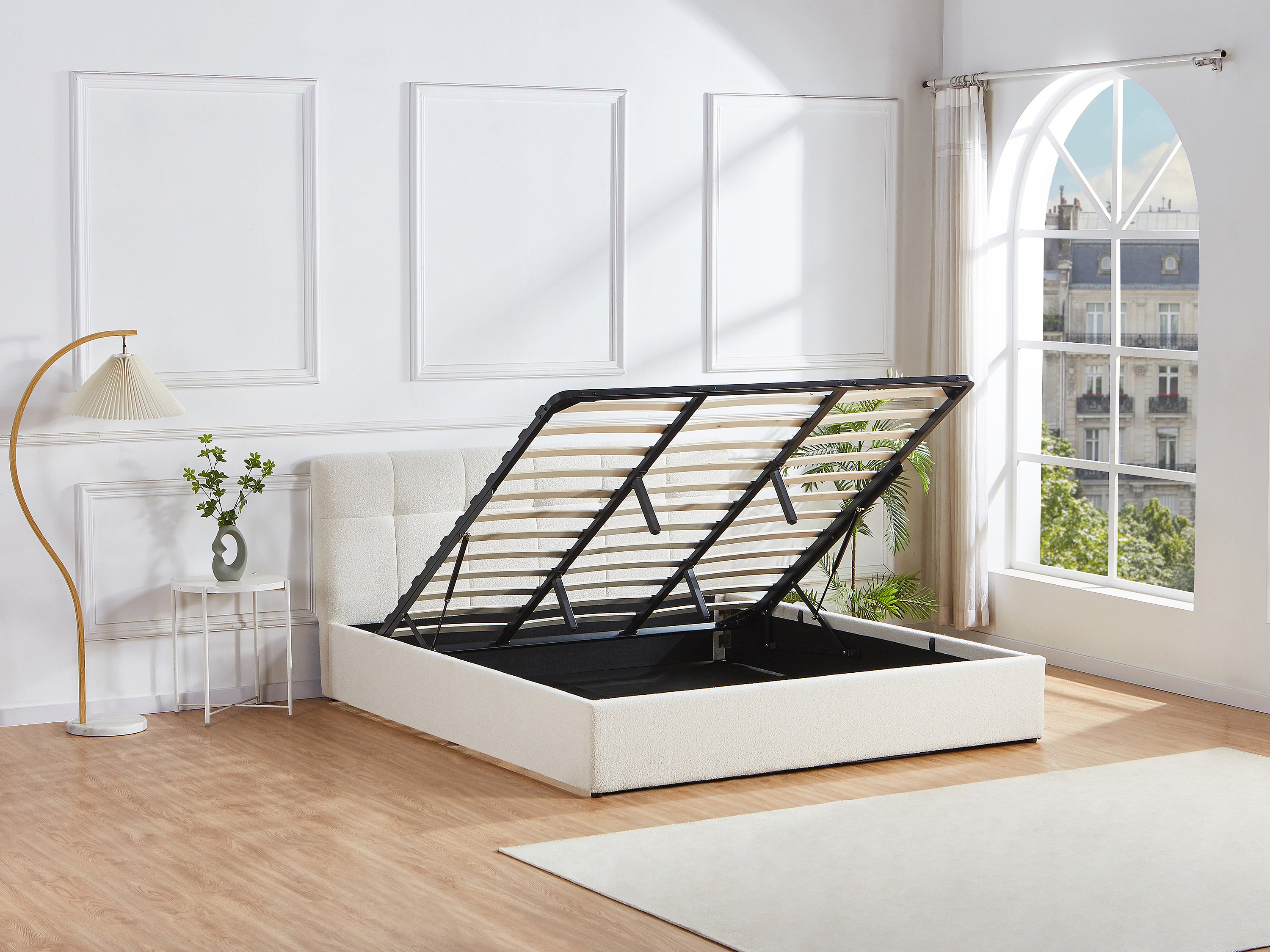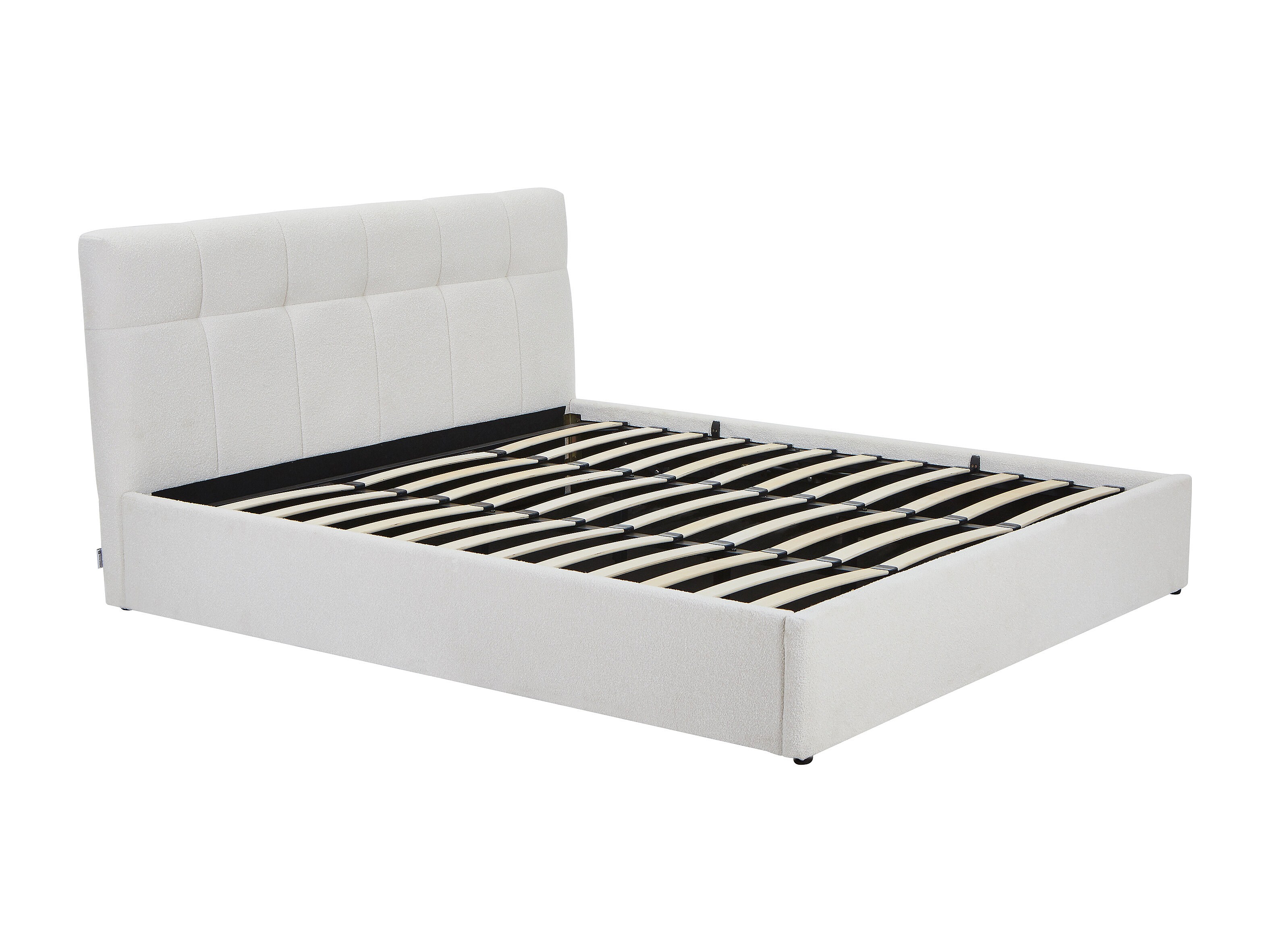 Lit coffre 180 x 200 cm - Tissu bouclette - Blanc - MAZIRI