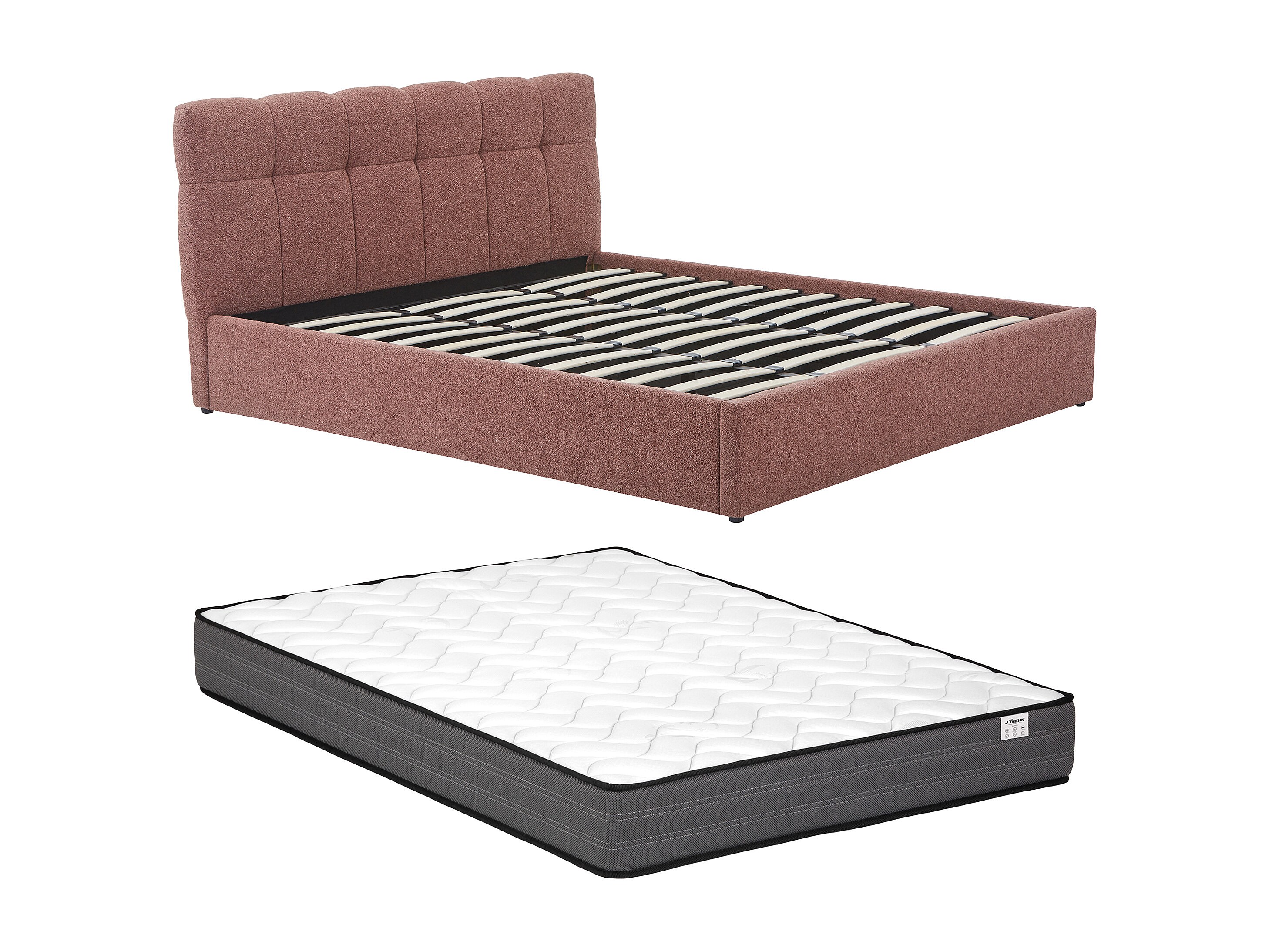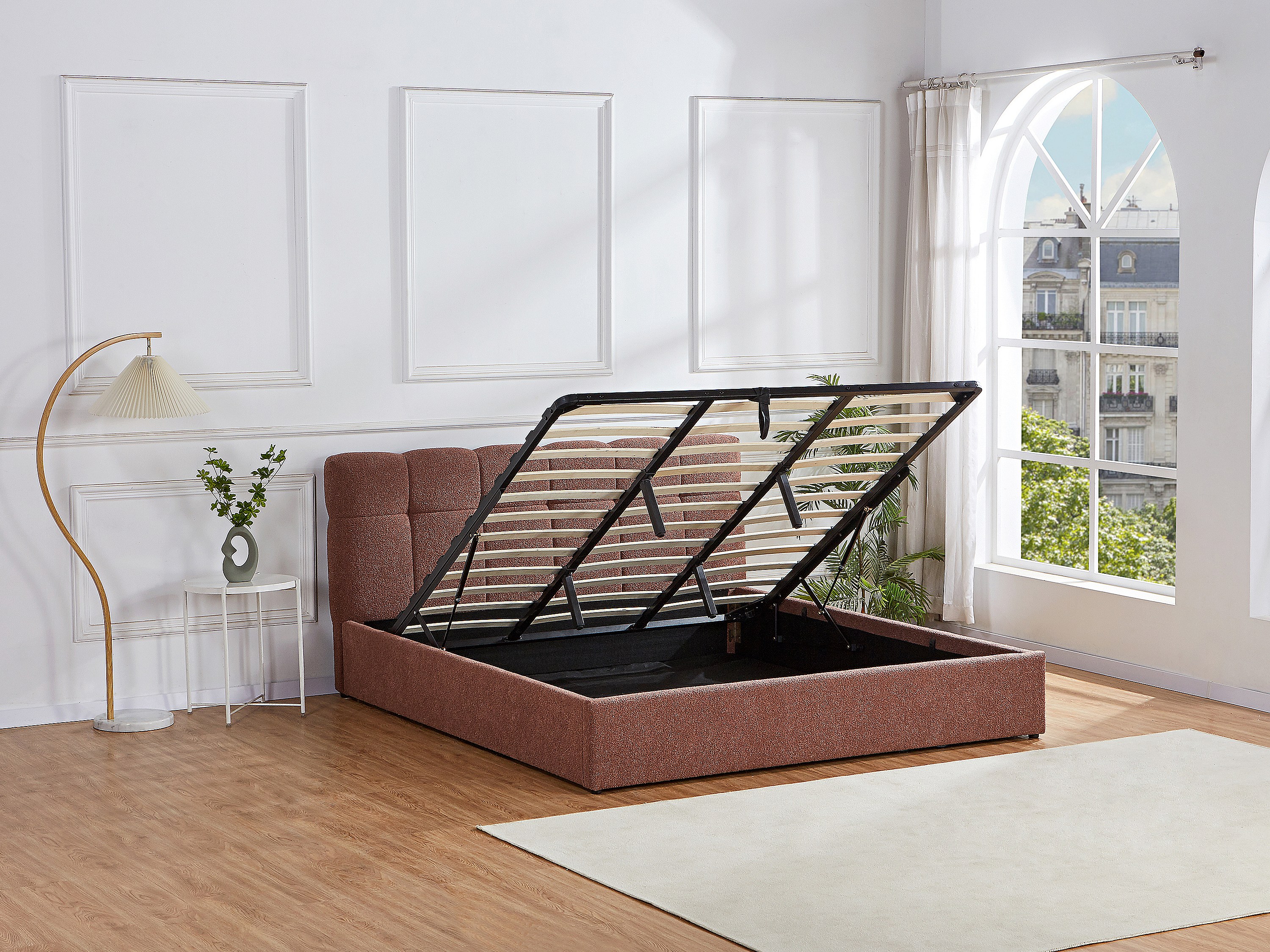 Lit coffre 180 x 200 cm - Tissu bouclette - Terracotta + Matelas - MAZIRI