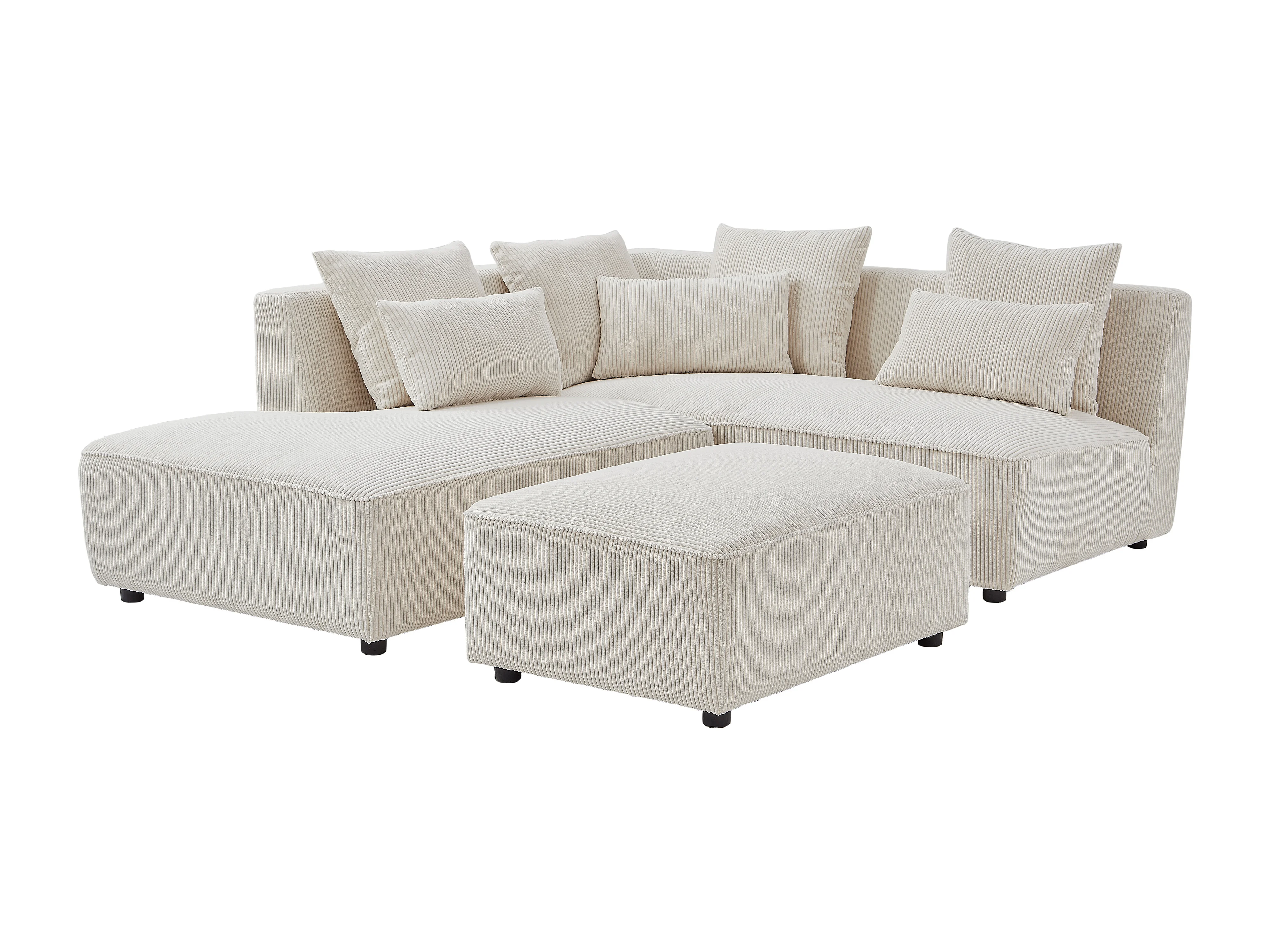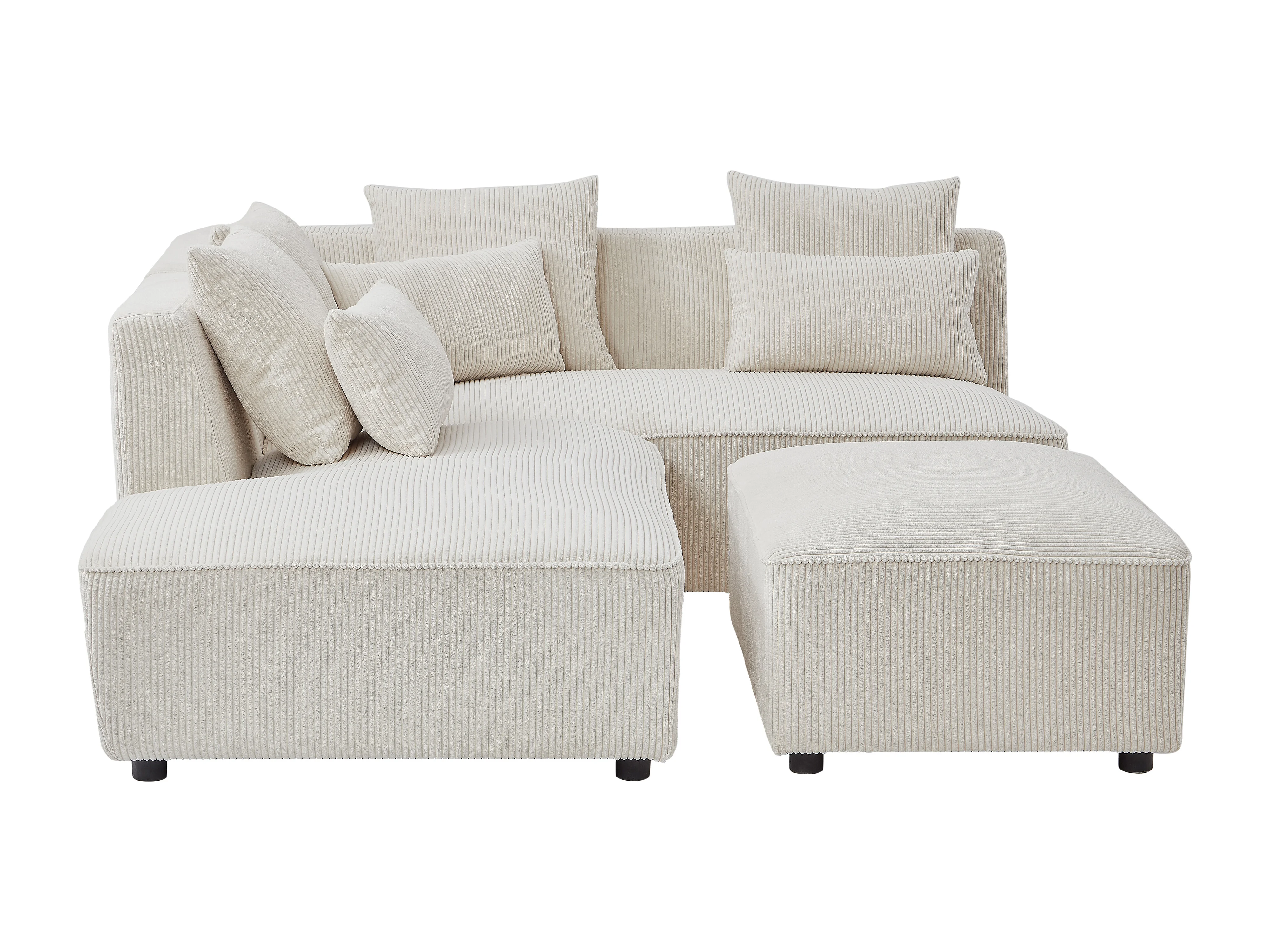 Canapé d'angle gauche et pouf en velours côtelé beige MECODI