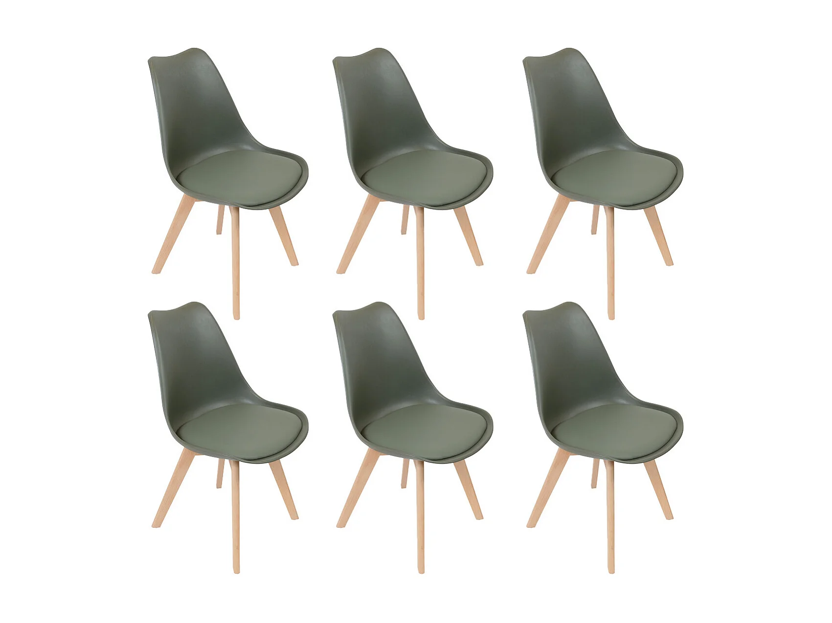 MEDALINE - Lot de 6 Chaises Scandinaves Kaki