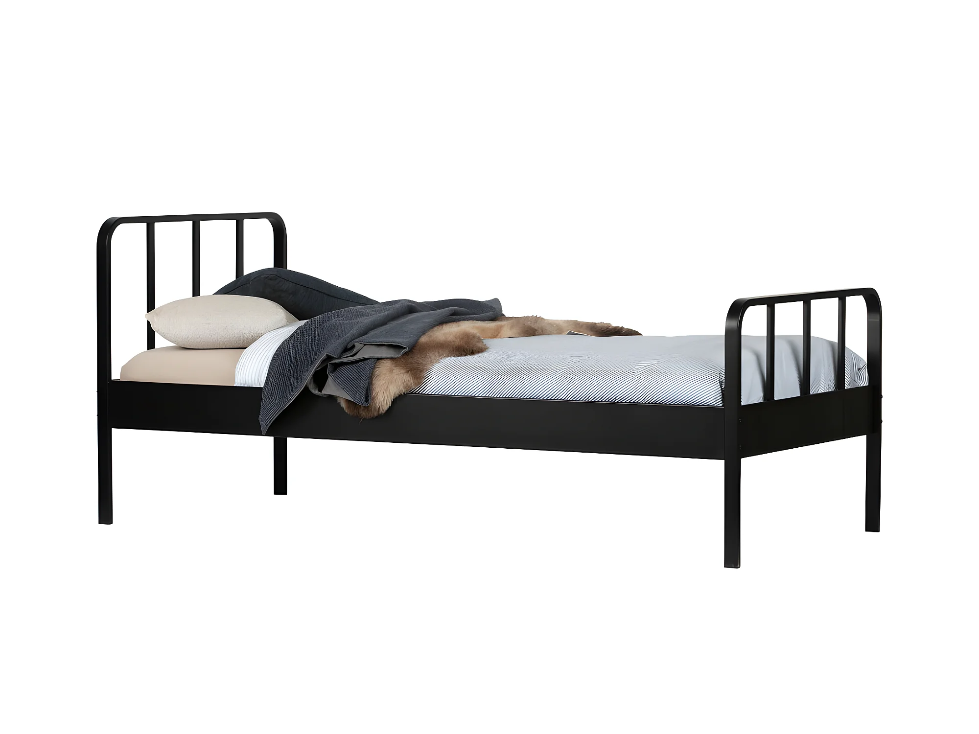 Mees - Lit en métal 90x200cm - Noir