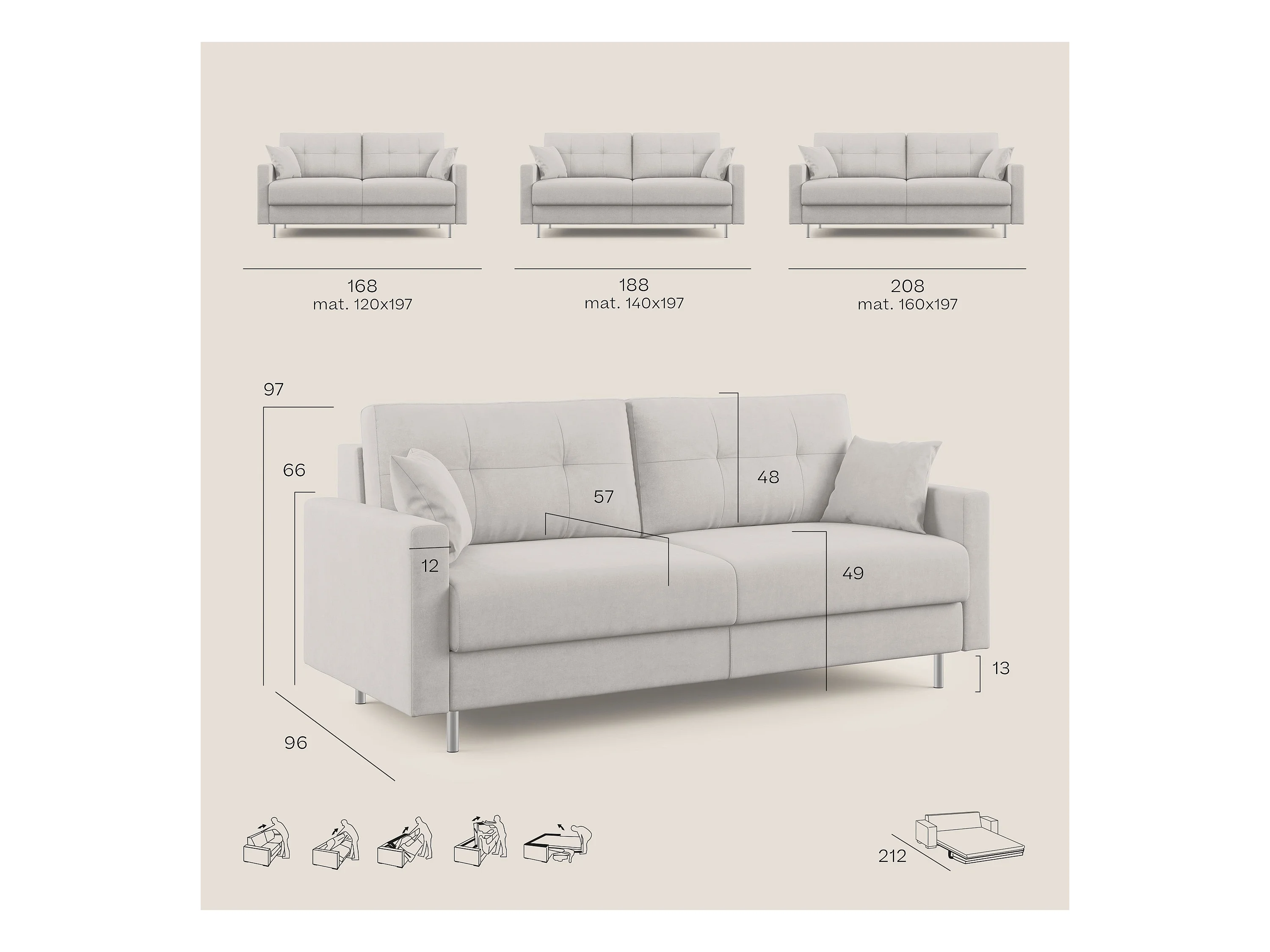 Megan Canapé convertible en microfibre détachable T11 208 cm (mat. 160x197) creme