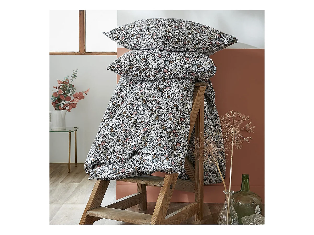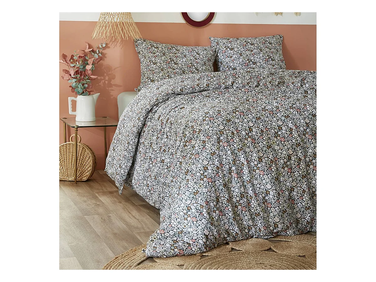MEGAN - Parure de Lit Imprimé Fleurs Housse de Couette 140x200cm + 1 Taie d'Oreiller