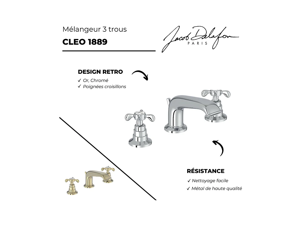Mélangeur 3 trous croisillons JACOB DELAFON Cléo 1889 or beige + nettoyant