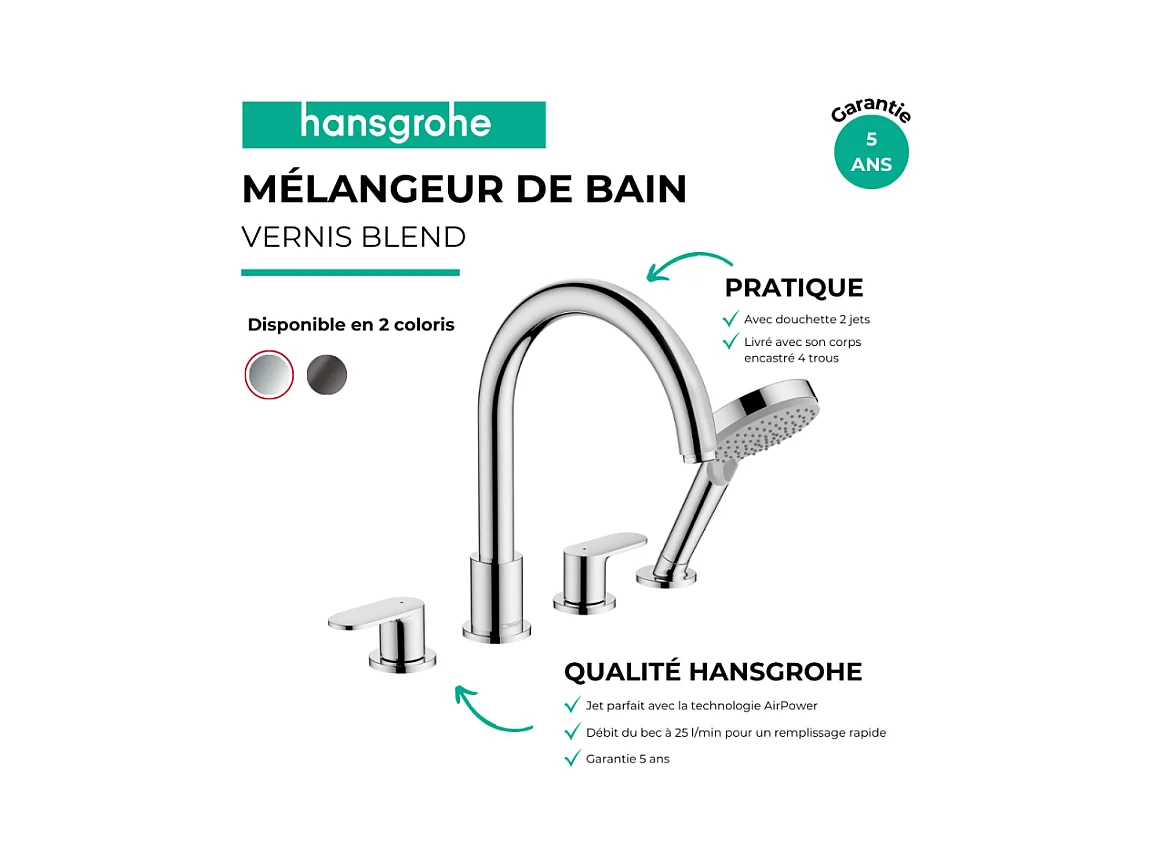 Mélangeur bain douche 4 trous HANSGROHE Vernis Blend chromé + corps d'encastrement