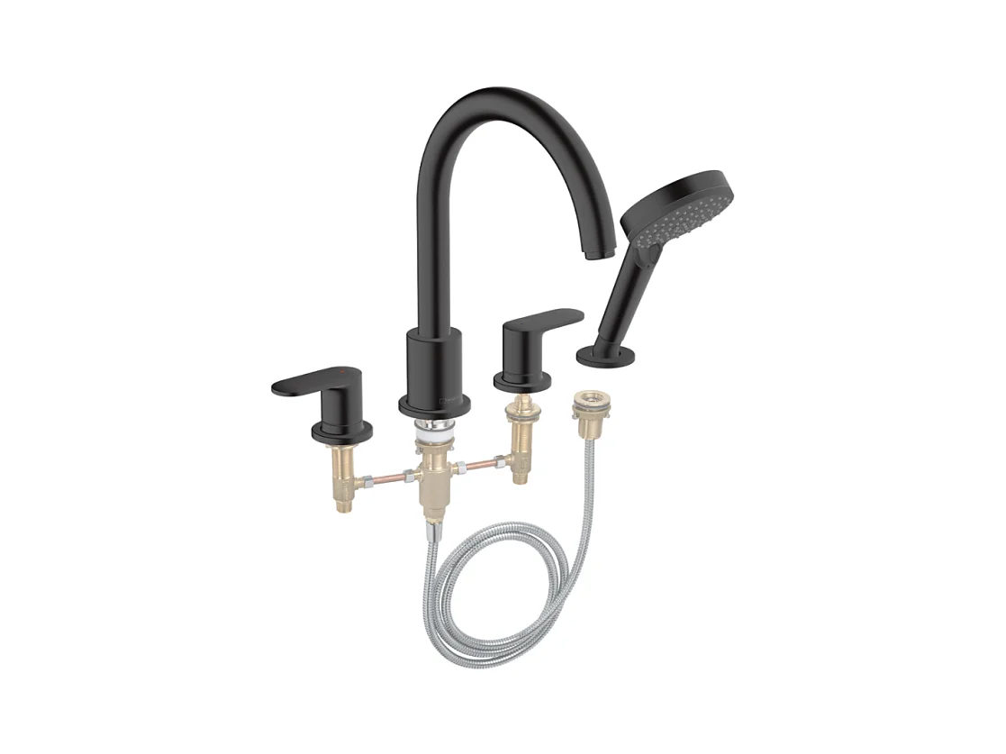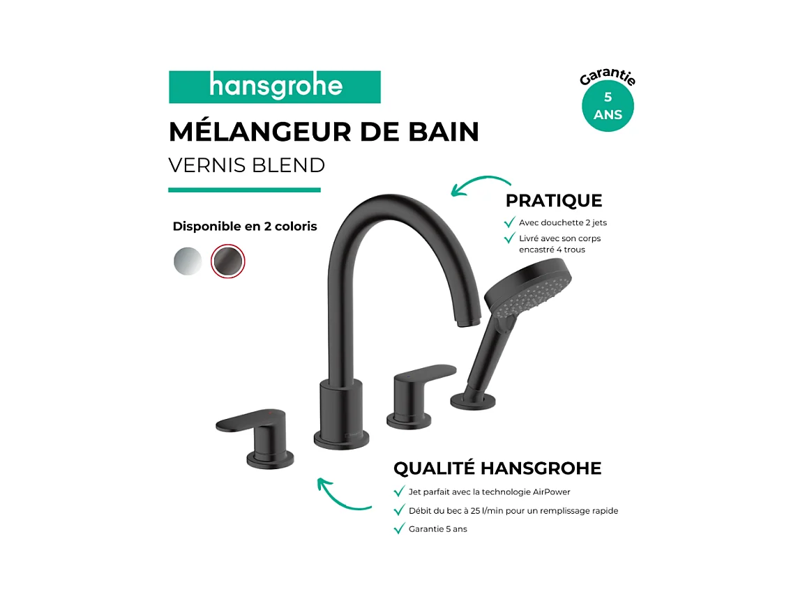 Mélangeur bain douche 4 trous HANSGROHE Vernis Blend noir mat + corps d'encastrement