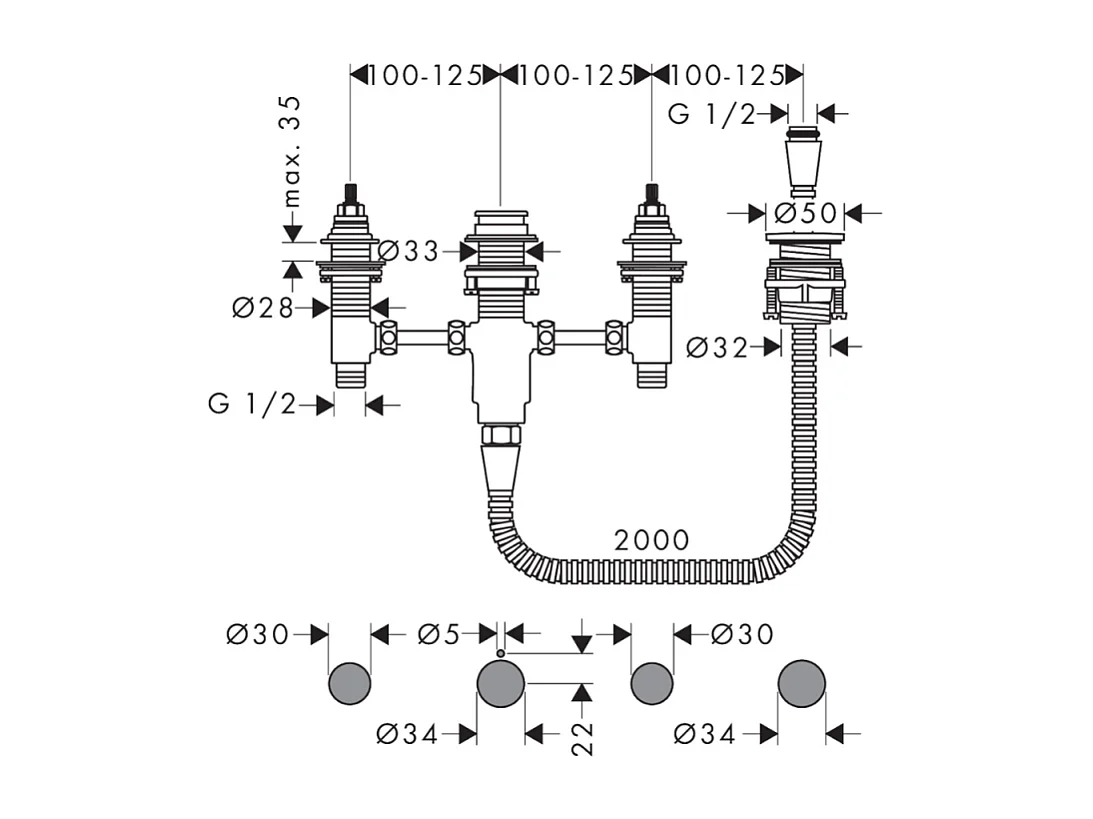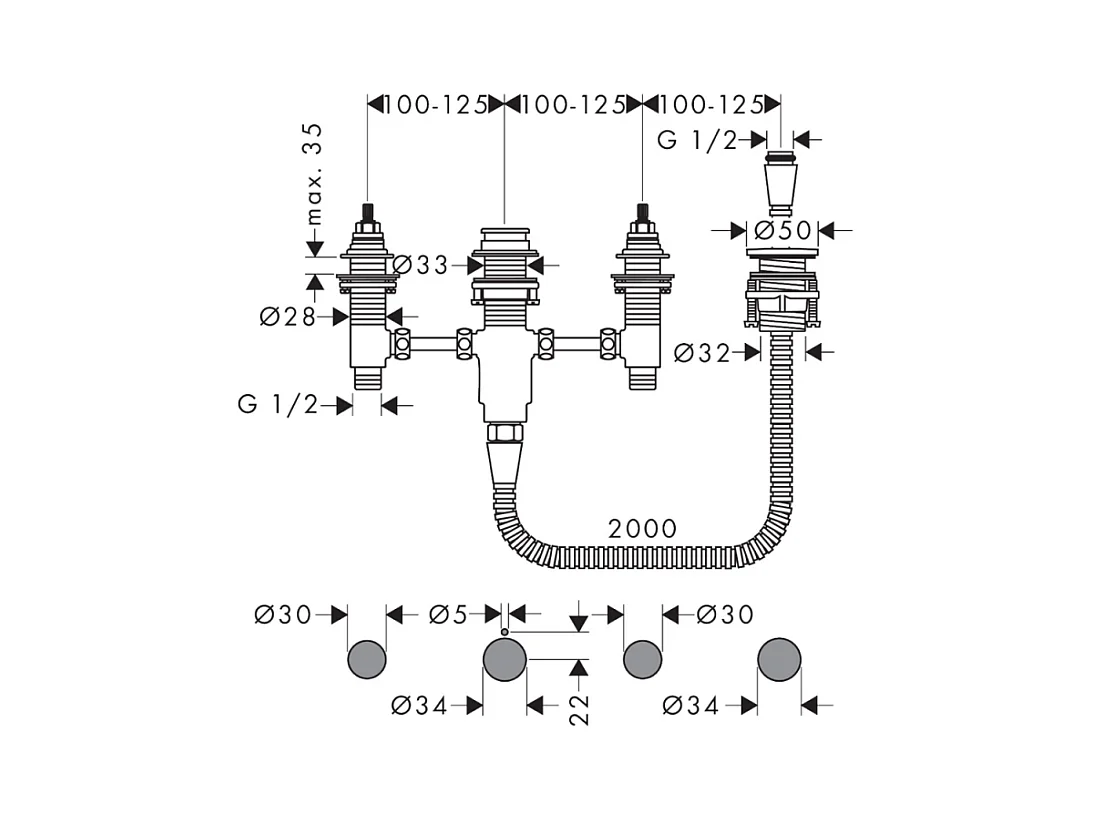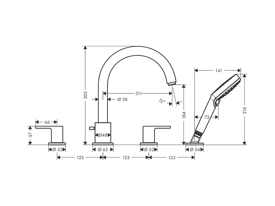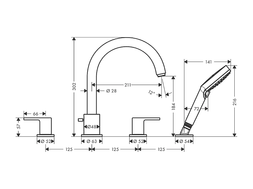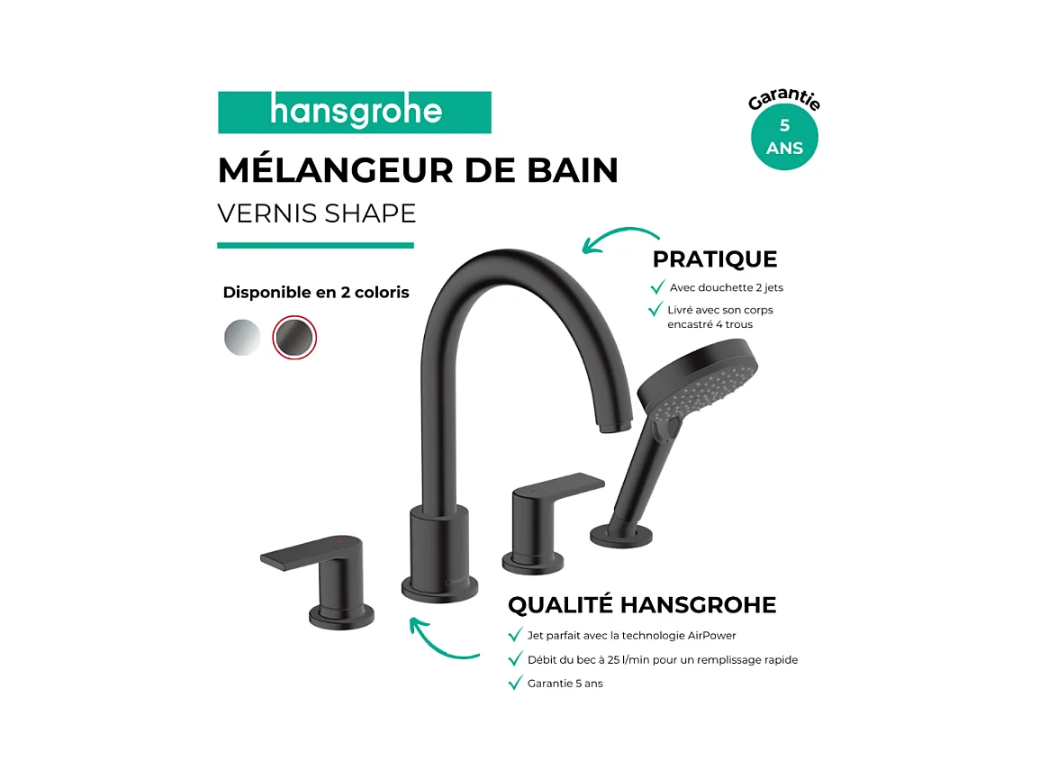Mélangeur bain douche 4 trous HANSGROHE Vernis Shape noir mat + corps d'encastrement