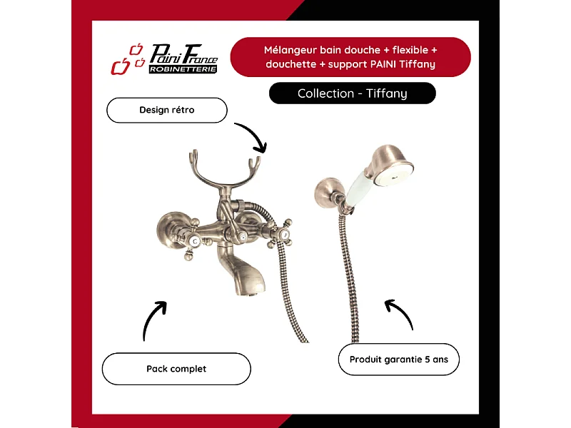 Mélangeur BAIN douche flexible + douchette + support PAINI Tiffany Gris Acier