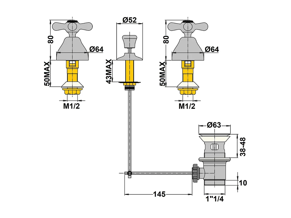 Mélangeur bidet 3 trous PAINI Tiffany Vieux Bronze