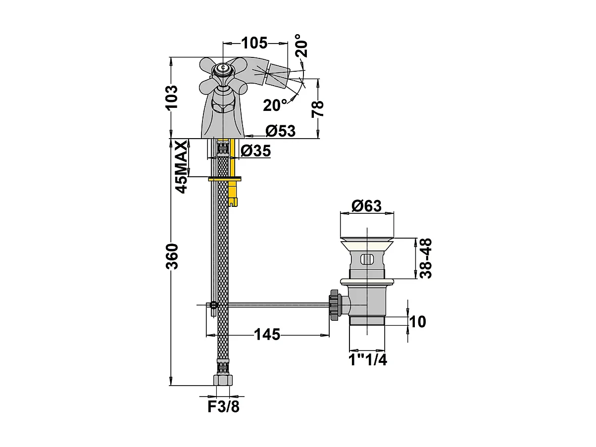 Mélangeur bidet monotrou PAINI Tiffany Vieux Bronze