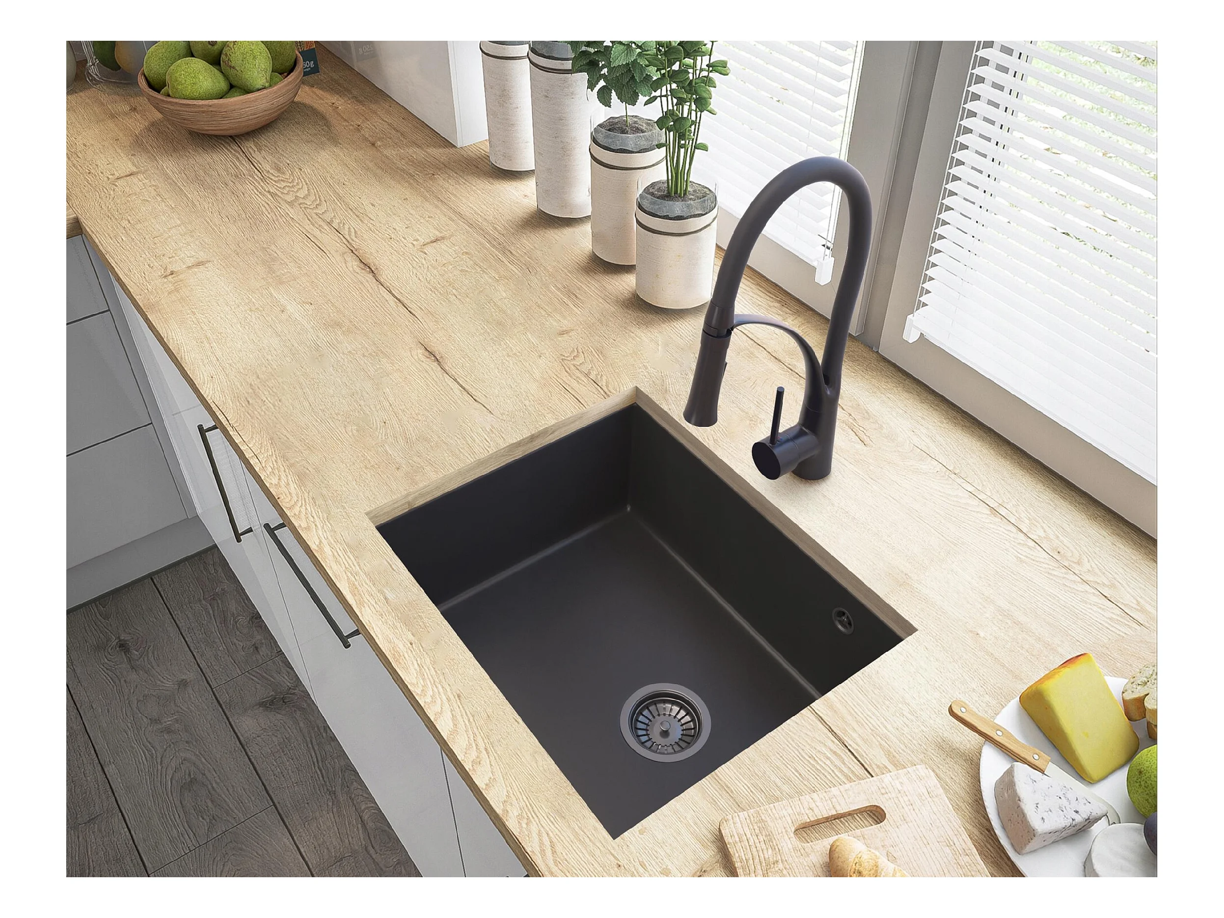 ROBINET DE CUISINE DROIT POUR ÉVIER GRANIT NOIR ROX