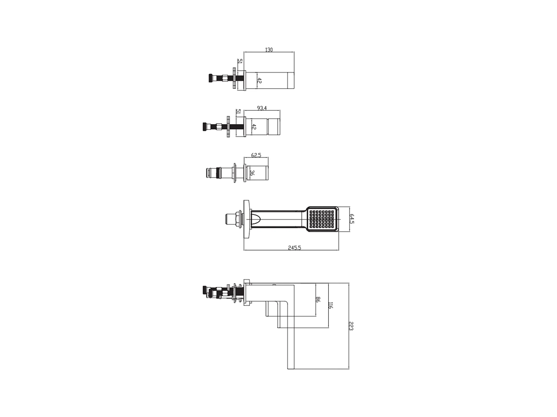Mélangeur de bain 4 trous en BARETTI Couleur: noir mat