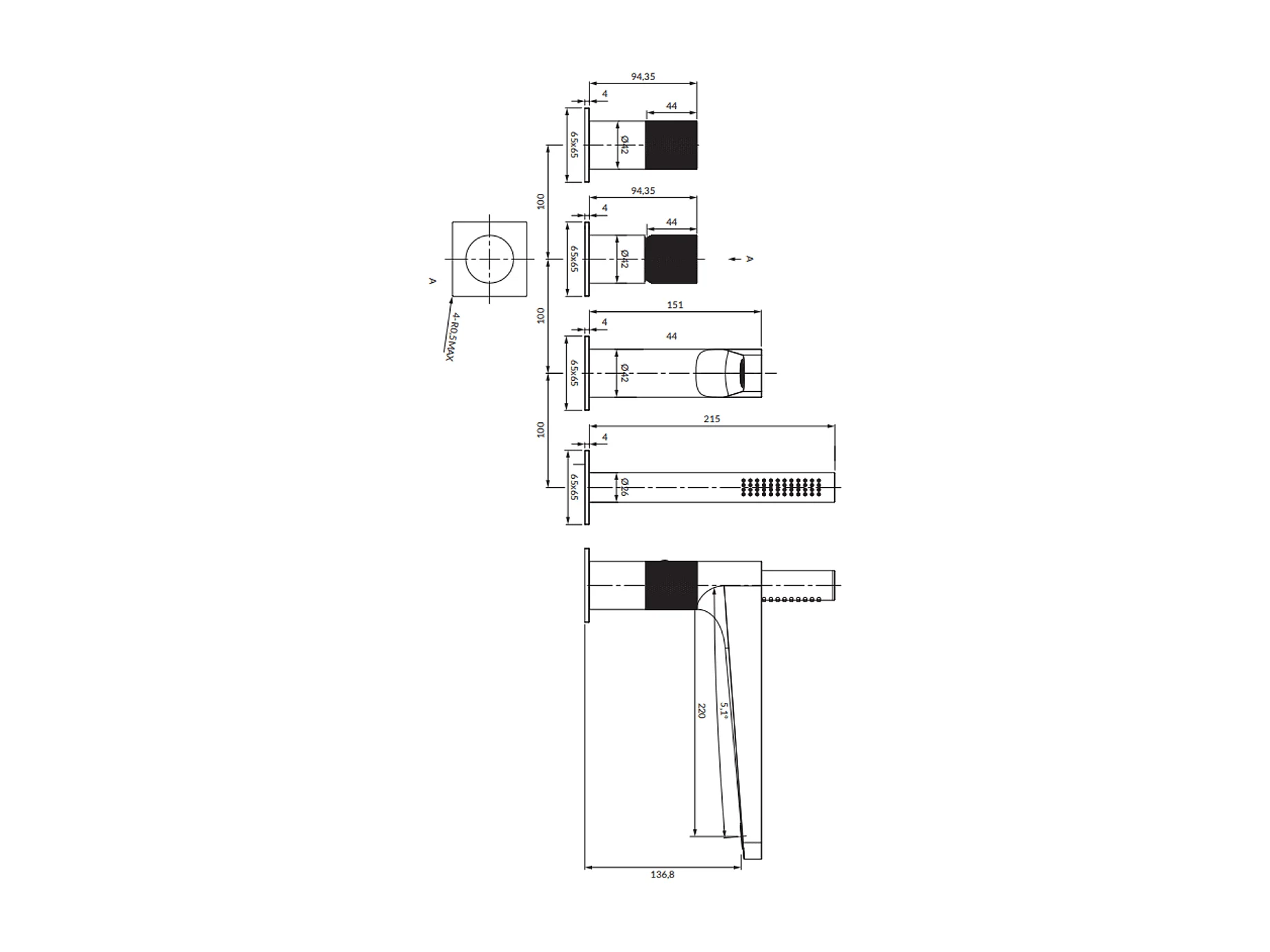 Mélangeur de bain 4 trous en CONTOUR Couleur: anthracite