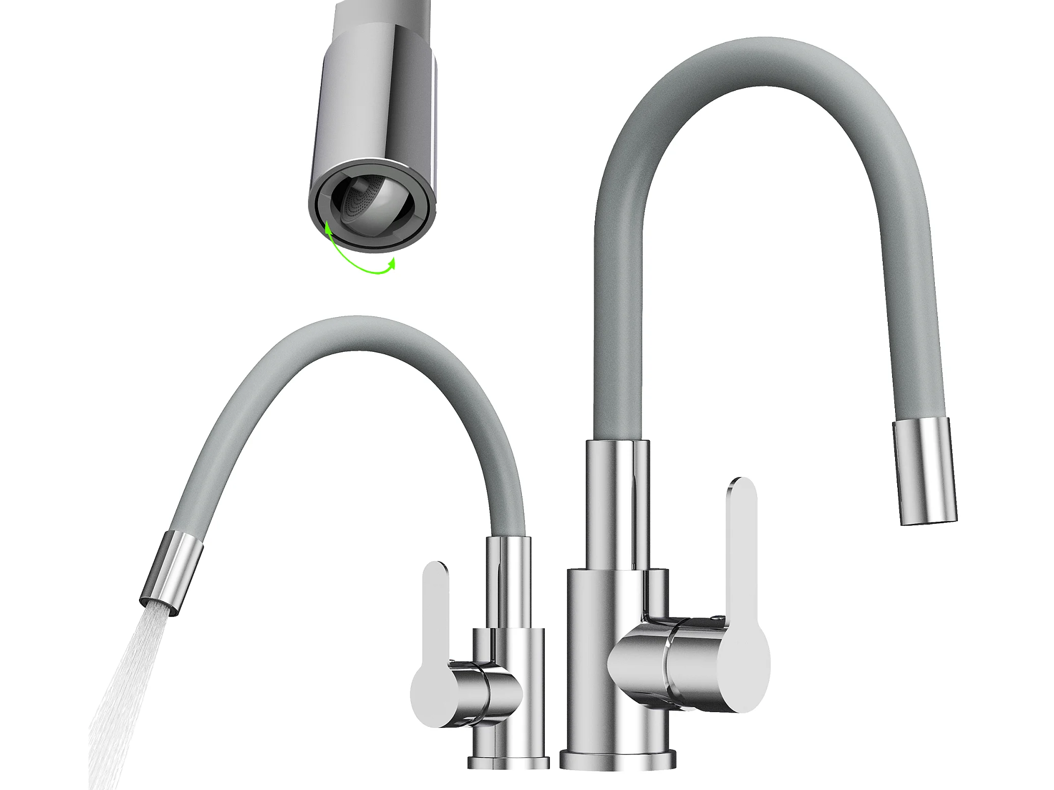 Mélangeur de cuisine à bec flexible Gris GRADO PLUS aérateur de bec pivotant