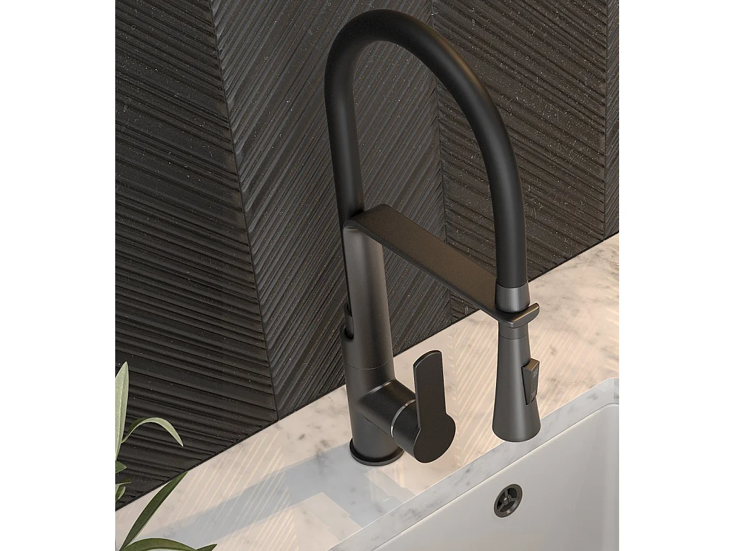 MÉLANGEUR DE CUISINE AVEC DOUCHETTE EXTRACTIBLE NOIR VEGAS DOUBLE ROBINET