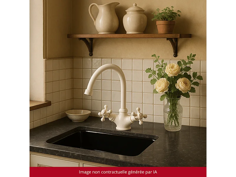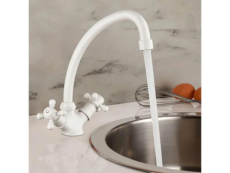 Mélangeur de cuisine bec col de cygne mobile PAINI Tiffany Blanc