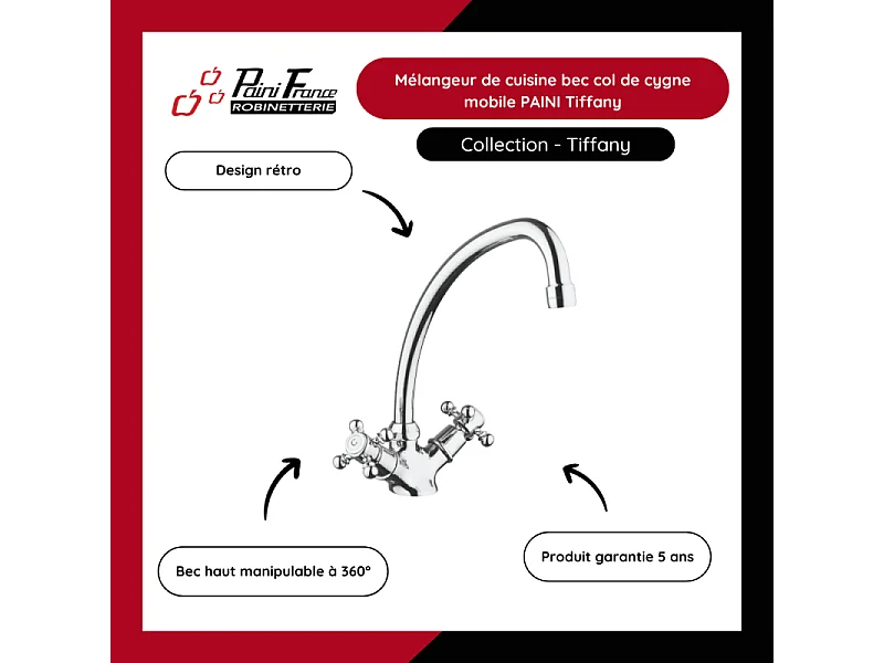 Mélangeur de cuisine bec col de cygne mobile PAINI Tiffany Cuivre