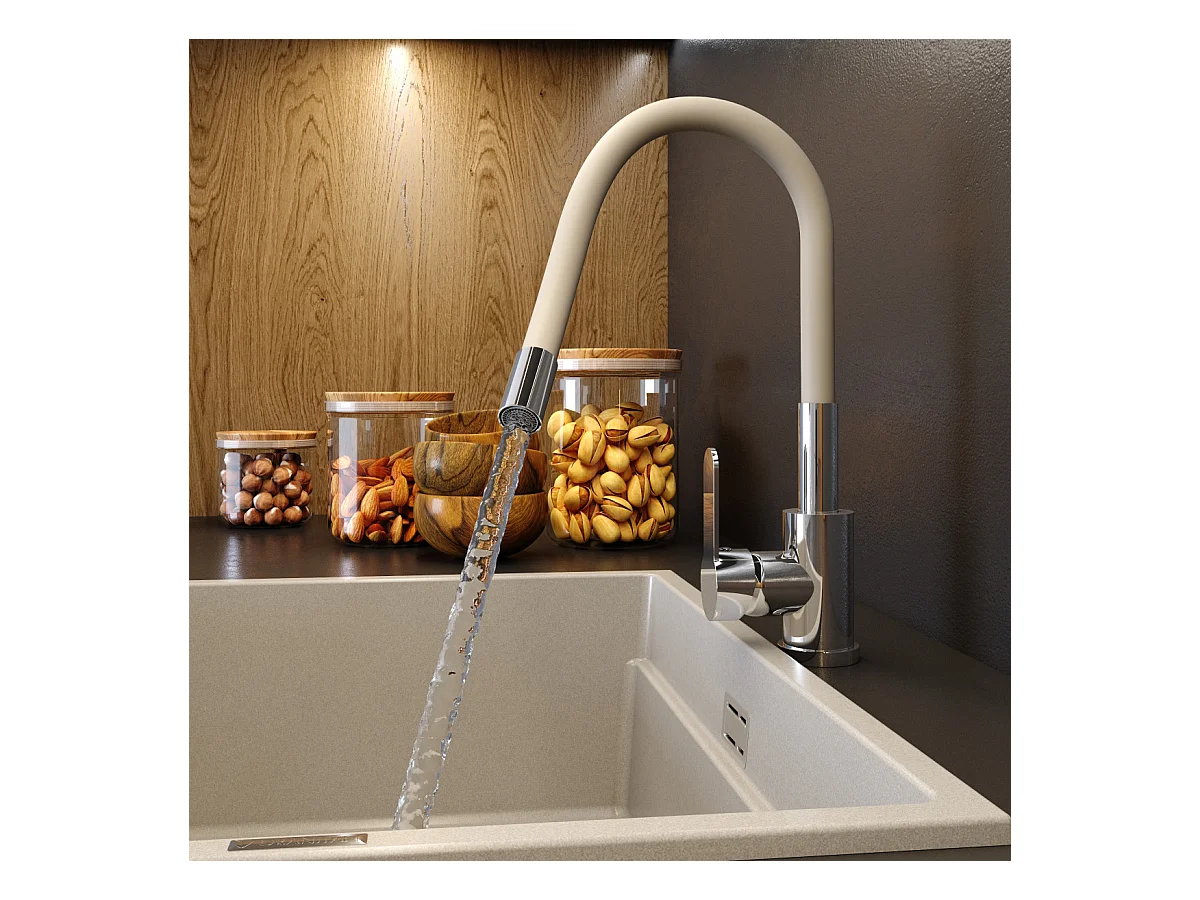 MÉLANGEUR DE CUISINE BEIGE AVEC BEC FLEXIBLE ROBINET D'ÉVIER GRADO