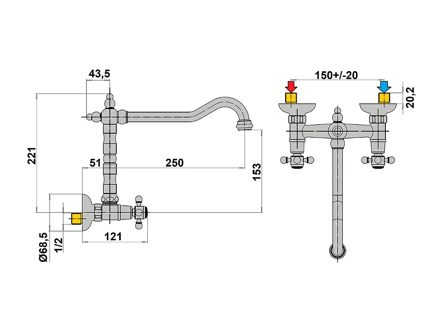 Mélangeur de cuisine mural bec rétro PAINI Tiffany Cuivre