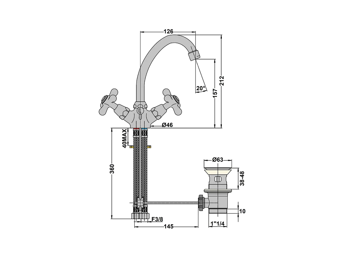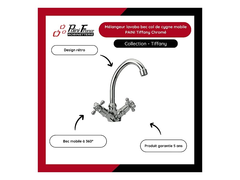 Mélangeur lavabo bec bas mobile PAINI Tiffany Chromé
